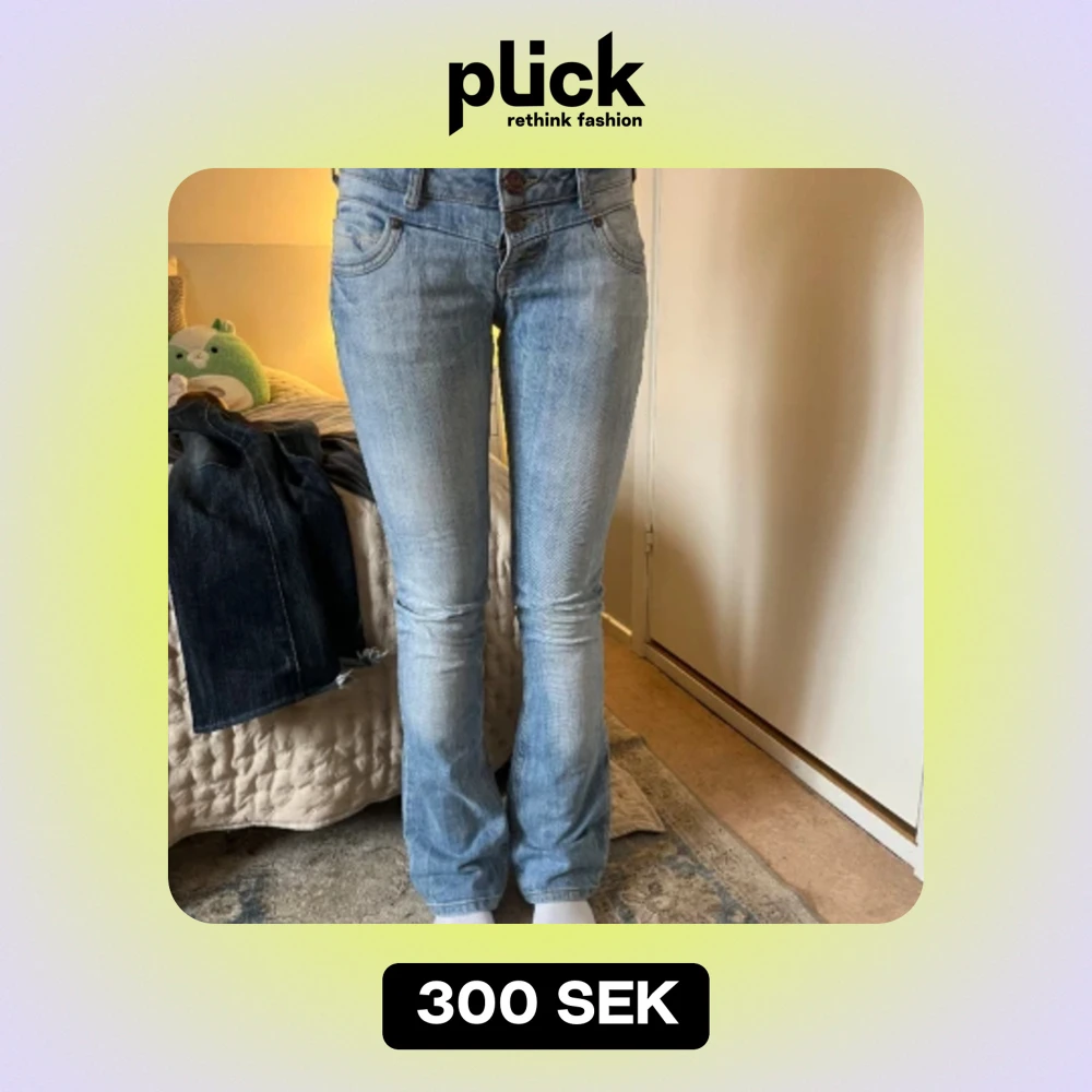 Säljer dessa vintage lågmidajde bootcut jeans, mycket fint skick, inga slitningar. Gör inga byten