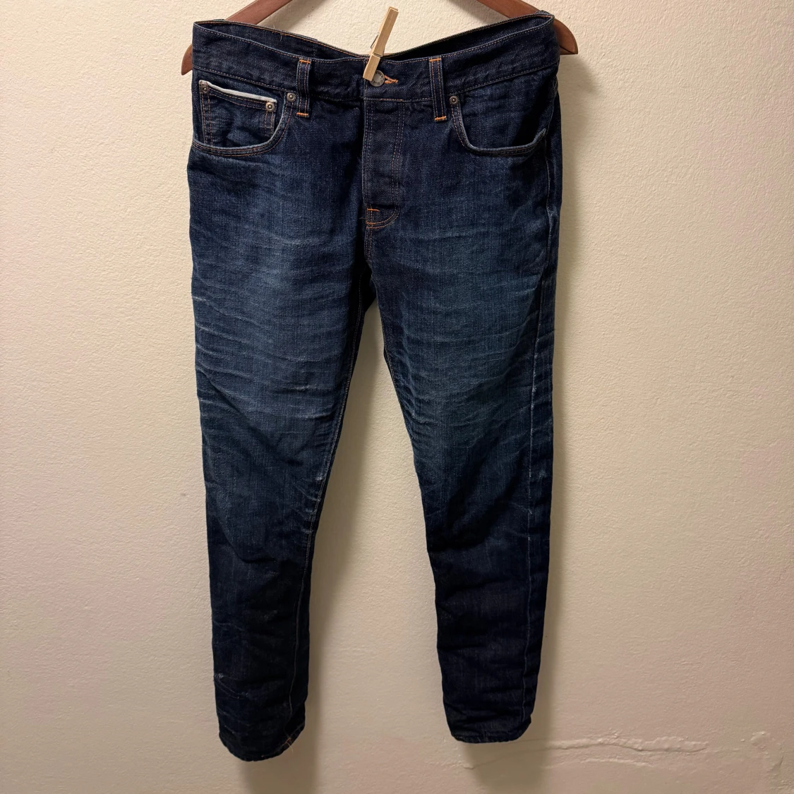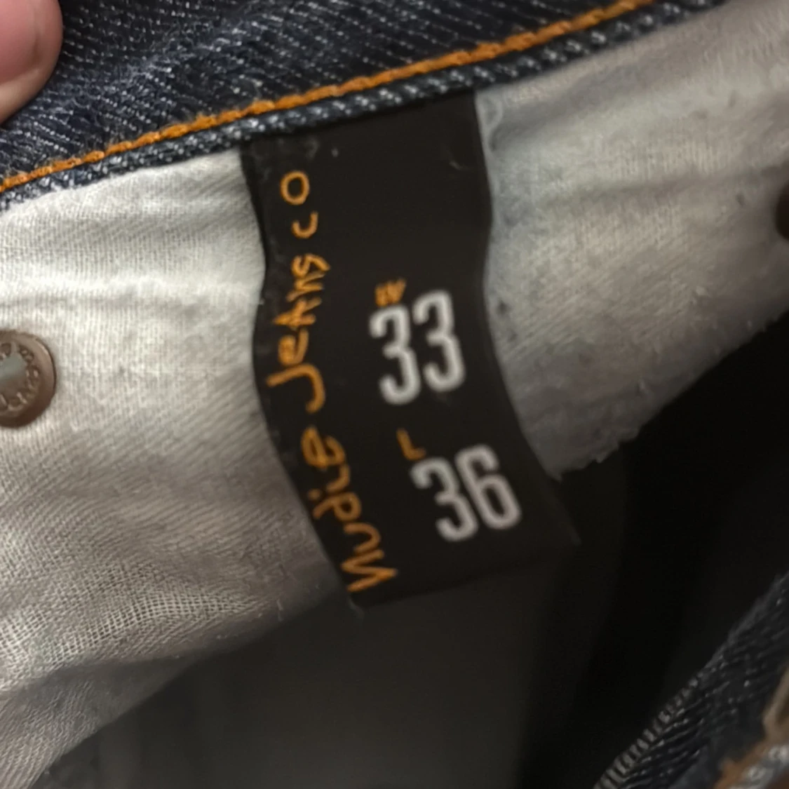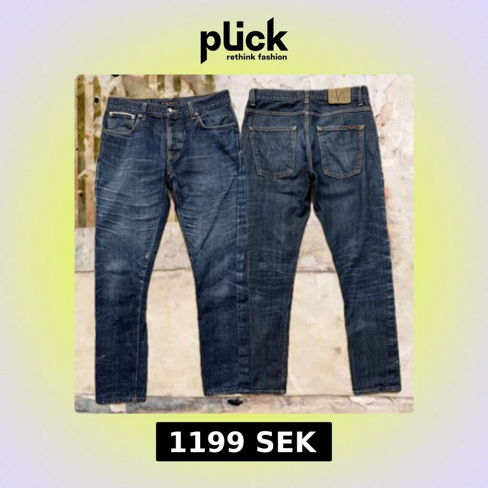Tjena! Säljer dessa riktigt snygga Selvage nudie jeans, jeansen är i modellen GrimTim(slim) och har riktigt snygga fades och slitningar, w33/l36 passar kortare, Midja-41,5/ Längd-102/ Benöppning-16,5, hör av dig vid funderingar!🙌