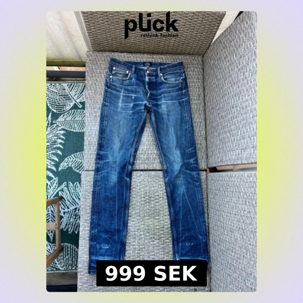 Dessa selvedge A.P.C jeans har fått sin snygga färg med användning därför ett högre pris. Också i gott skick! Midjemått 41cm Längd 104cm och passar mig mycket bra som 184cm. Enda defekten jeansen har är ett öppning i högerfickan men kan enkelt sys ihop med tråd och nål!