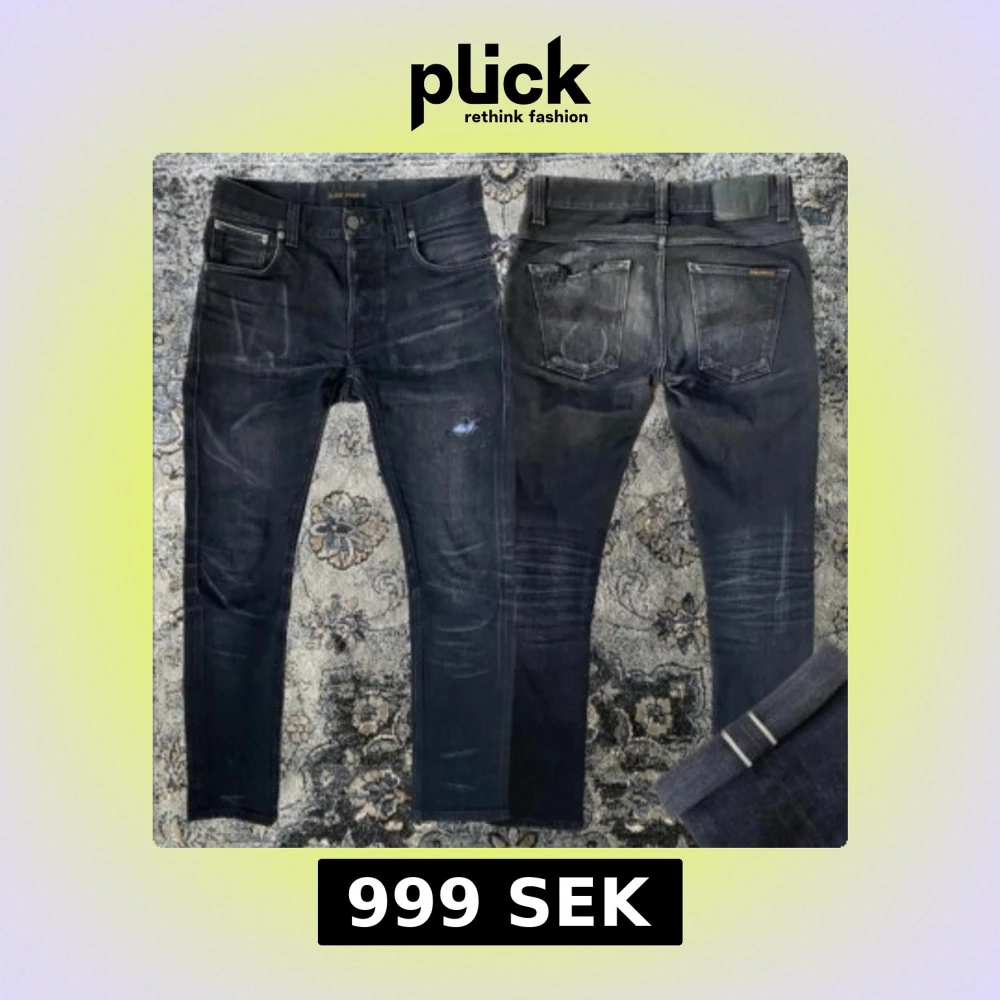 Sjukt feta Nudie selvedge jeans i modellen Grim tim och storlek 30/32 🙌 Jeansen har redan börjat få snygga tecken på användning men kommer bara bli snyggare över tid, skriv vid fråga ✌️ Midjemått 38 cm, ytterbenslängd 100cm