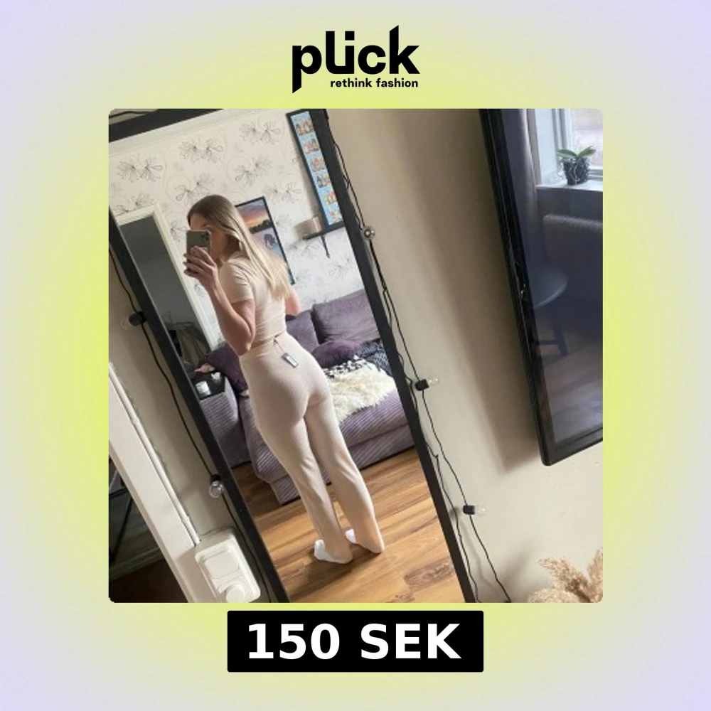 Ribbat rosa/beige set från Nelly storlek xs. Alla lappar kvar💗