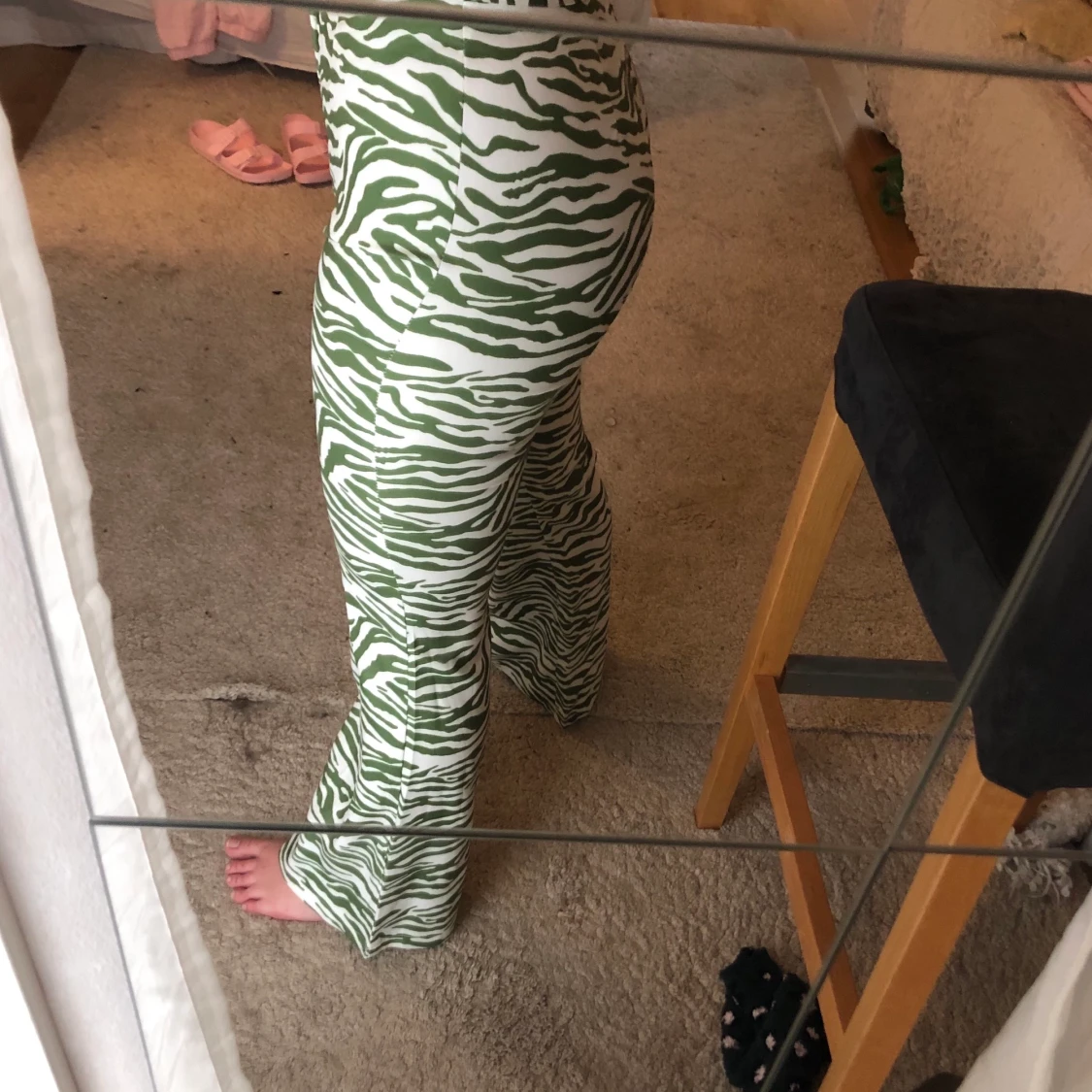 Zebra mönstrade byxor i grönt från Shein. Säljes pga de aldrig kommer användas av mig. Storlek M men skulle säga att dom är mer XS/S. Aldrig använda ❤️