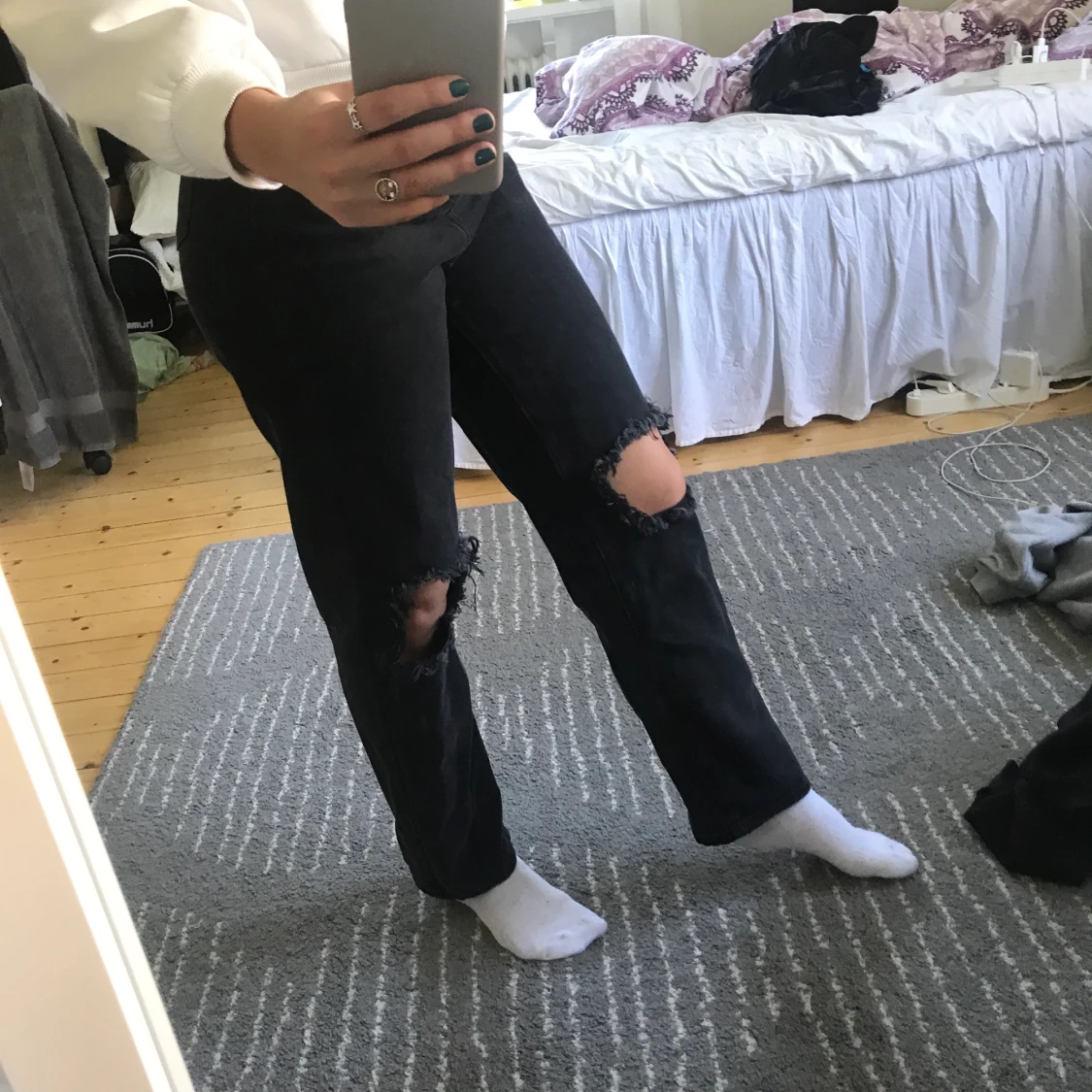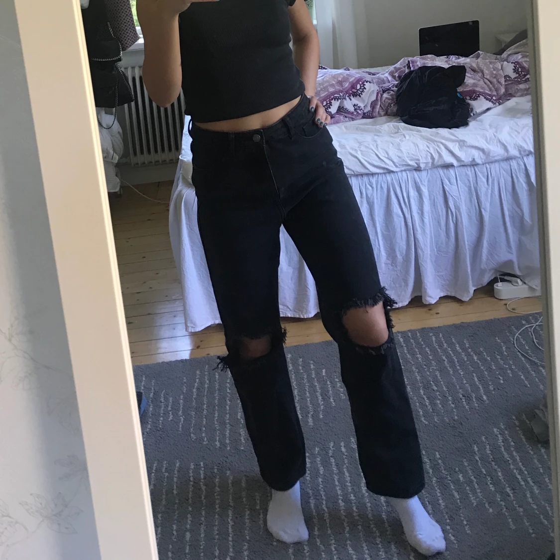 Iprincip nya jeans från SHEIN med hål på! Storlek 36 och passar mig bra som är 162 cm🥰