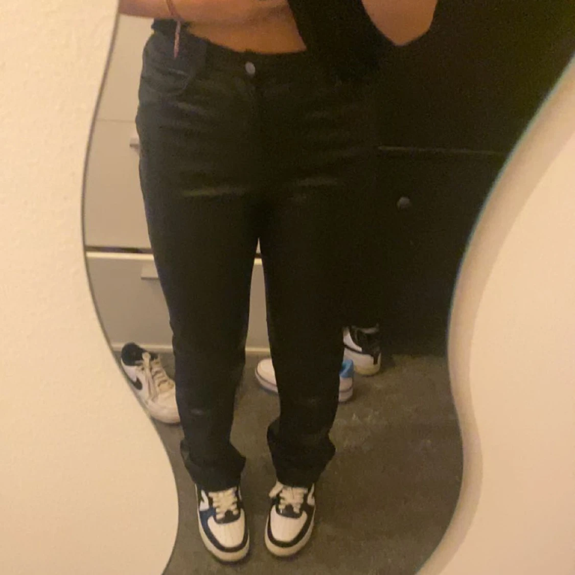 Svarta skinnbyxor Säljer pga att Dome lite tajta vid midjan Aldrig använda Köpta från Shein PRIS KAN DISKUTERAS