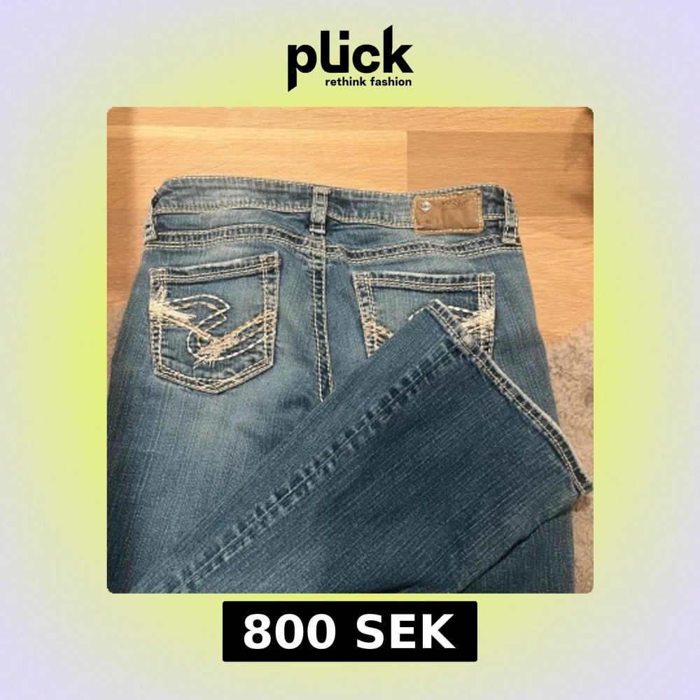 Blå low waist jeans från Silver Jeans med snygga kontrastsömmar och broderade bakfickor. ❤️köpte för 900 kr aldrig använt där av priset.