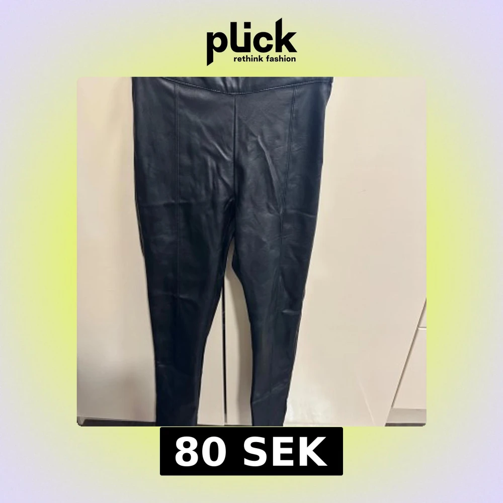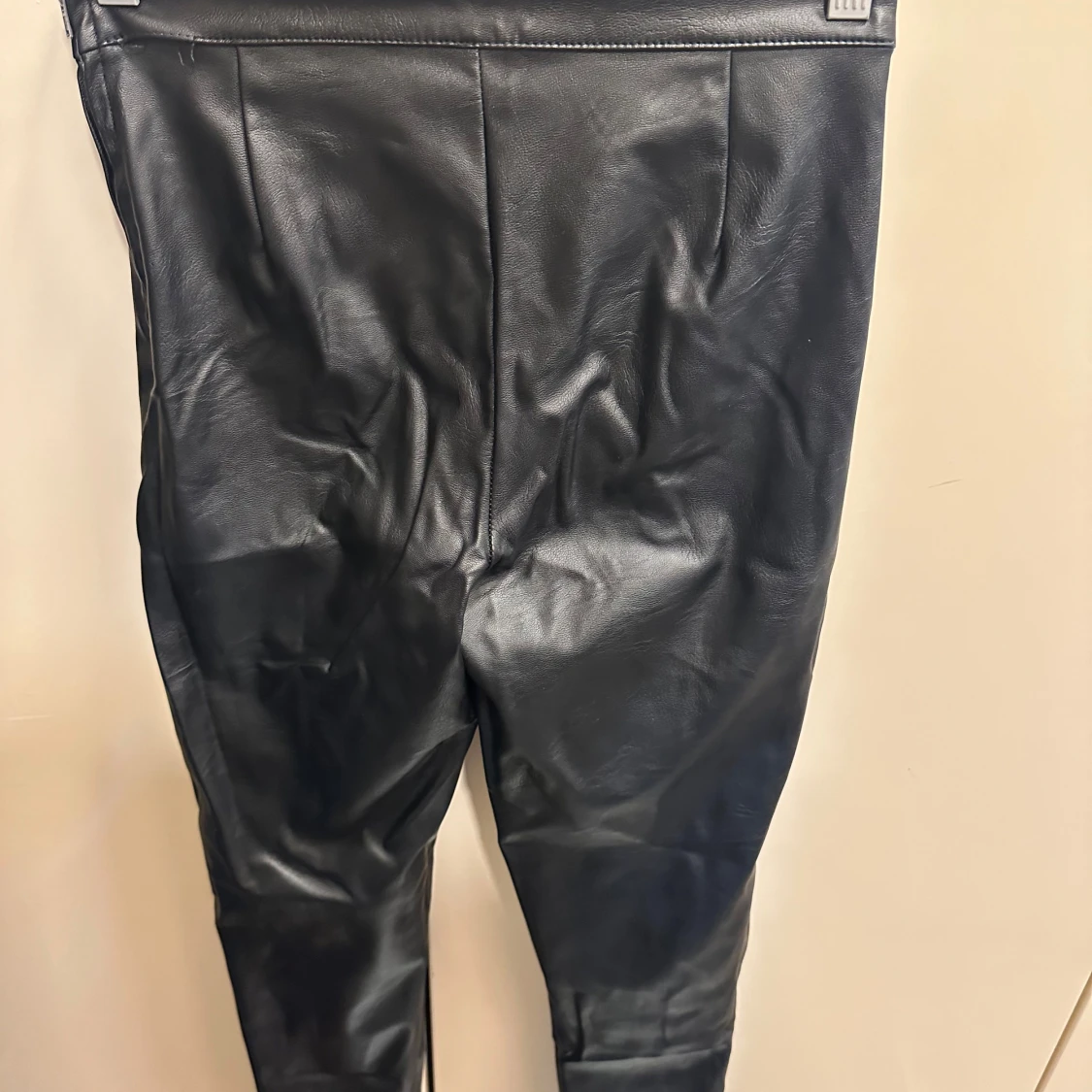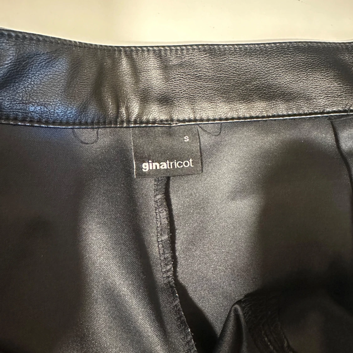 Snygga svarta skinnbyxor från Gina Tricot i storlek S. Byxorna har hög midja, smal passform och dragkedja i sidan. Perfekta för dig som vill ha en edgy look med stilren känsla. Materialet är mjukt och följsamt för en bekväm känsla hela dagen.