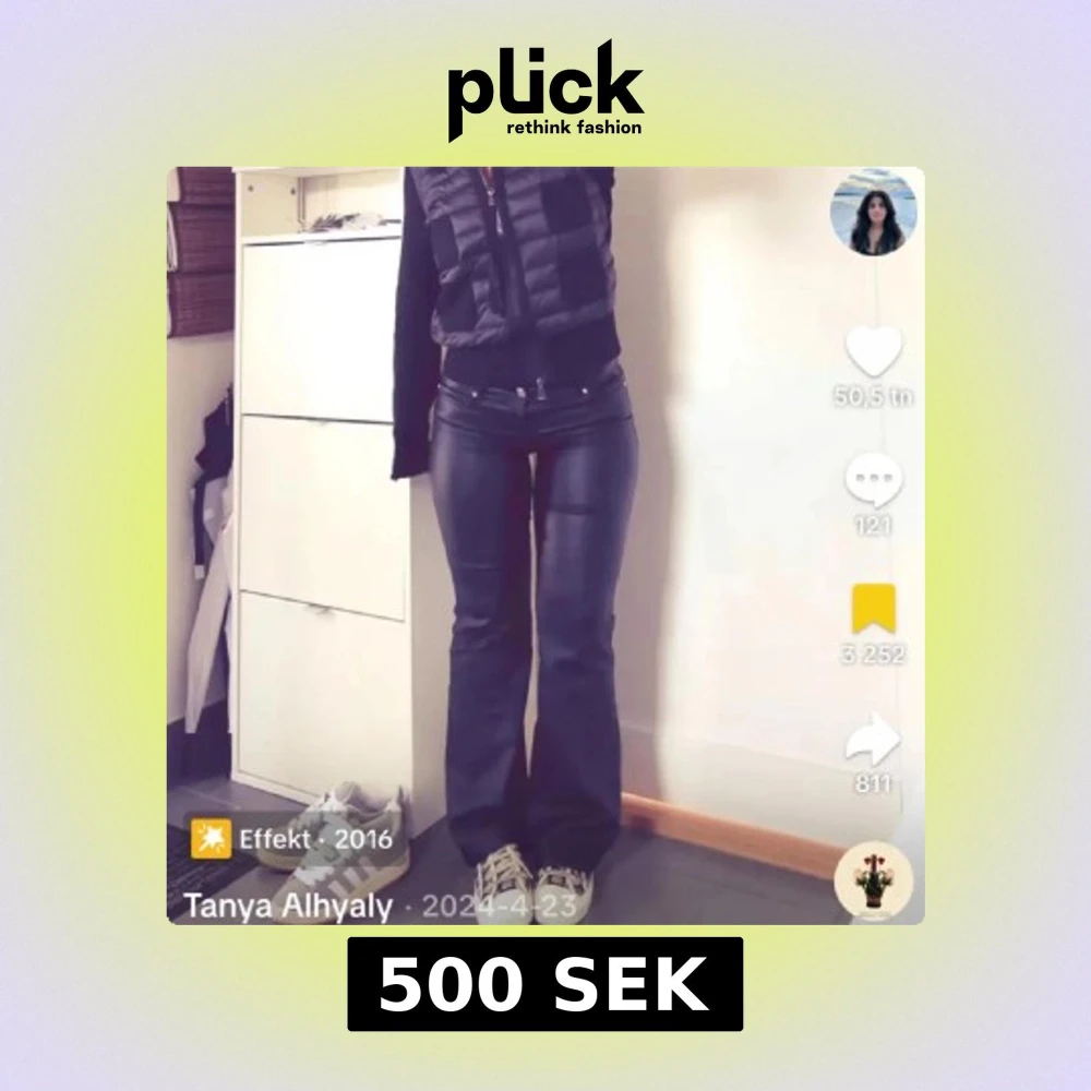 Snygga svarta byxor i skinnimitation med låg midja och bootcut-ben. Byxorna har klassisk femficksdesign och silverfärgade knappar. Perfekta för dig som vill ha en edgy och trendig look.