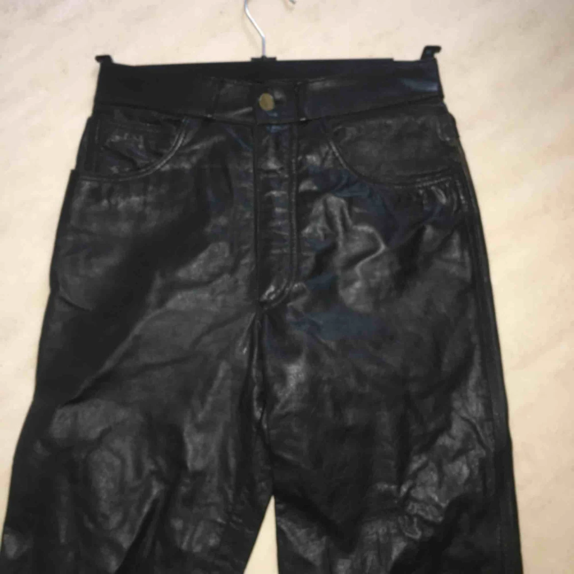 Äkta skinnbyxor i cool modell. Står ingen storlek men skulle tippa xs/s. Möter upp i Malmö/Lund eller fraktar mot kostnad.