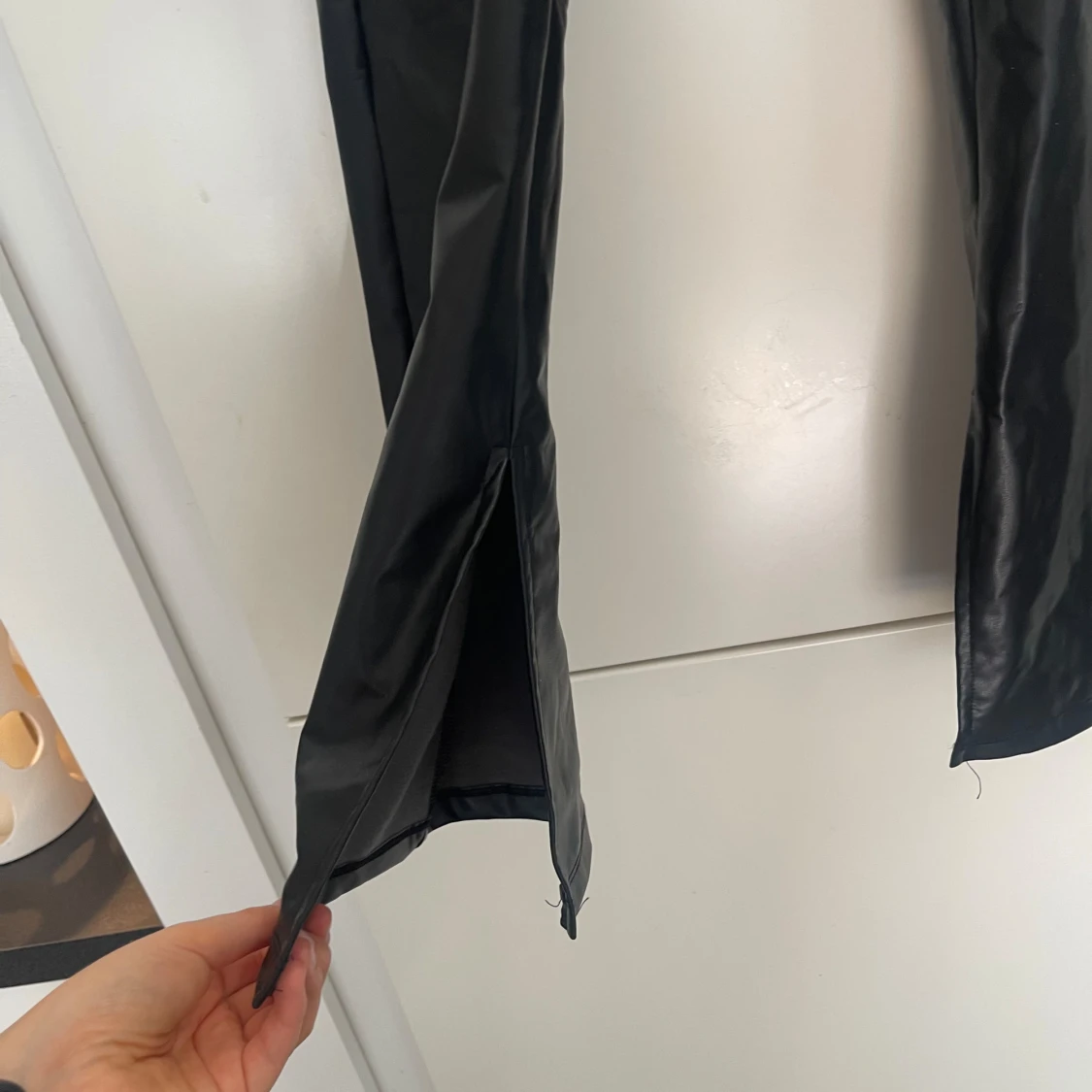Skinnbyxa med slits på benslutet och dragkedja i höften