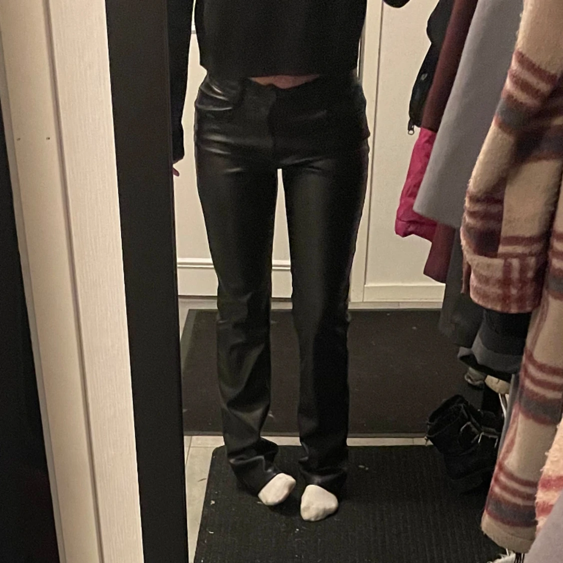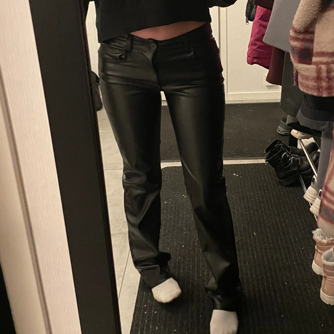 Säljer dessa läderbyxor från bikbok, raka i modellen och Lågmidjade!! Endast använda några få gånger men säljs då de inte kommer till andvändning