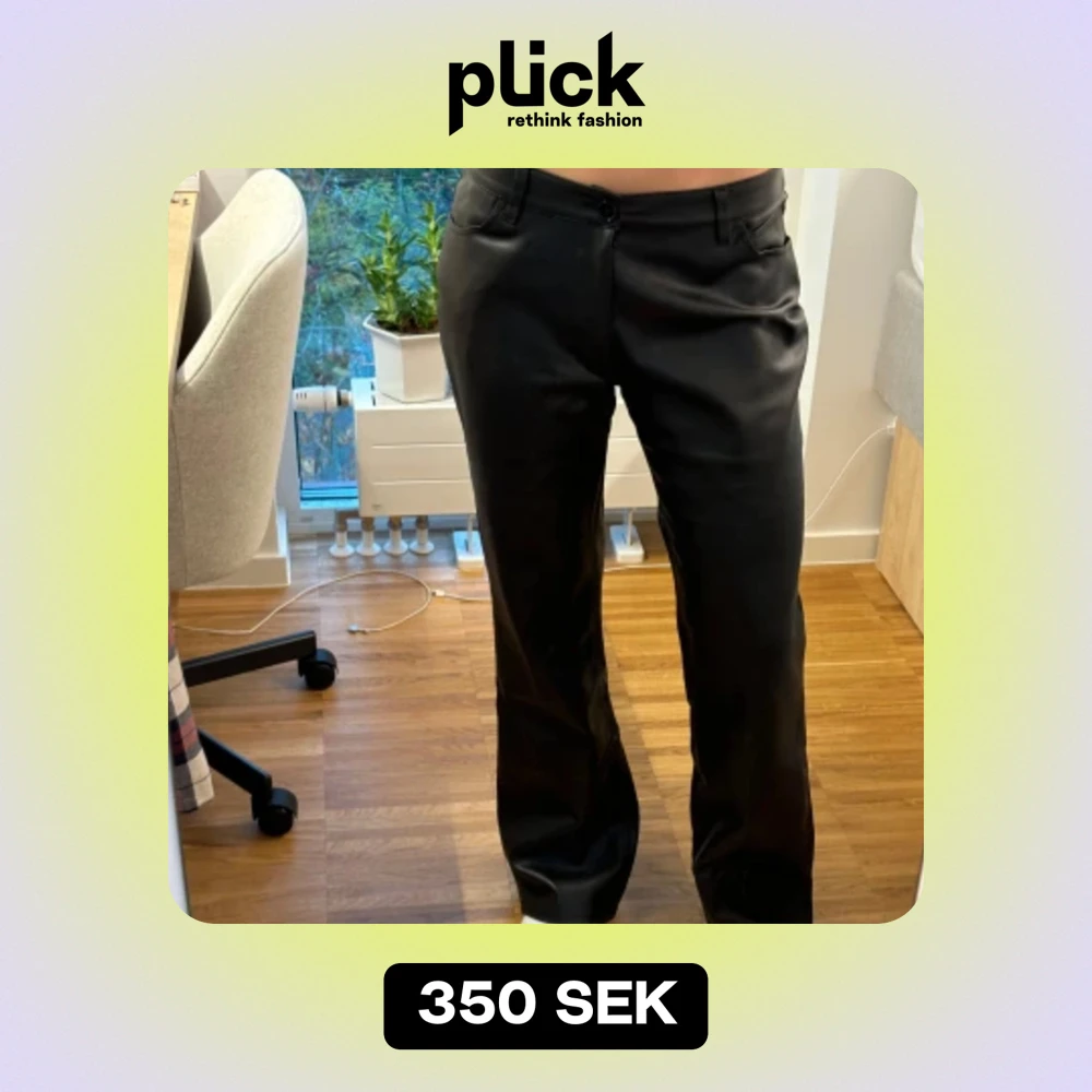Pu wide skinnimitation lågmidjade byxor från BikBok i storlek 40 men passade mig som 38. Säljer dom nu då de blivit för stora för mig. Knappt använda. Inköpspris 599