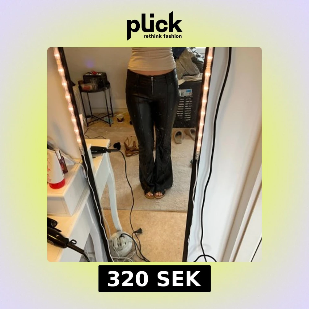 Snygga svarta skinnbyxor med låg midja och dragkedja fram. Byxorna har en tight passform och är perfekta för en trendig look. De är tillverkade i ett glansigt material som ger en cool och edgy stil. Har tecken på andvändning som på sista bileden men syns bara om man lyfter upp tyget över