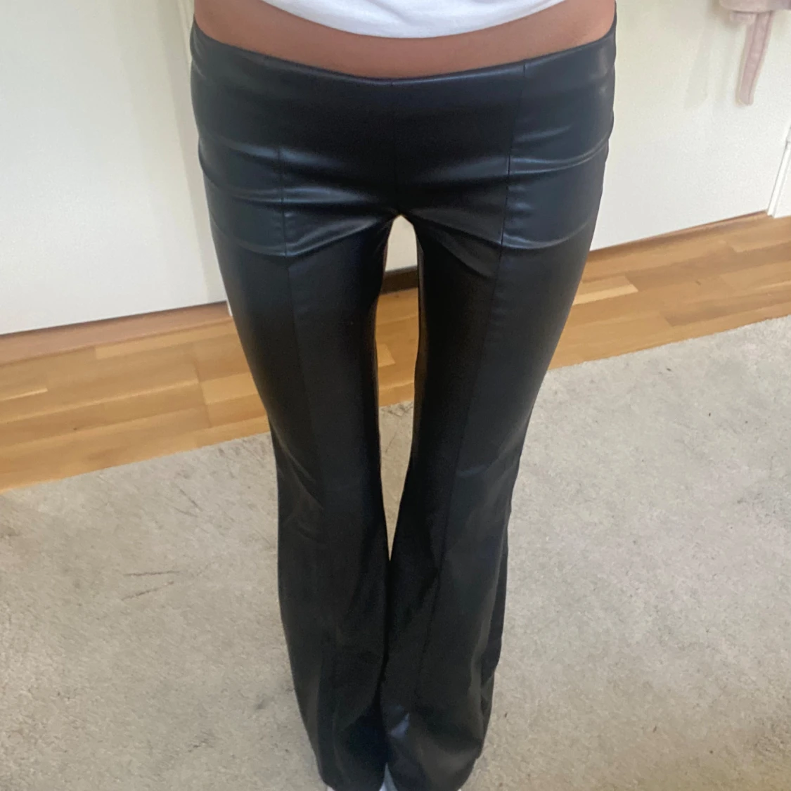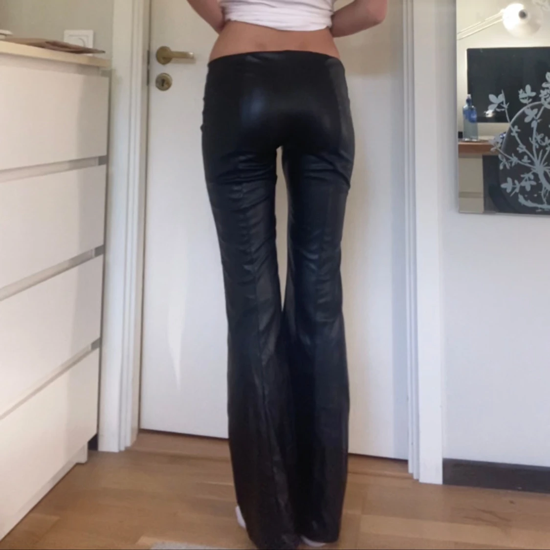 INTRESSEKOLL❤️ Sjukt snygga lågmidjade utsvängda skinnbyxor som tyvärr inte kommer till användning. Jag är 172 cm och de är perfekta i längden på mig. Har ni frågor är det bara att höra av er, kram!❤️