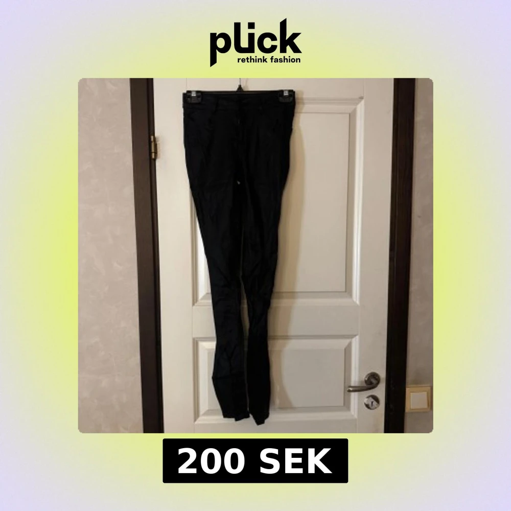 Säljer ett par svarta skinny skinnbyxor med klassisk femficksdesign och smal passform.