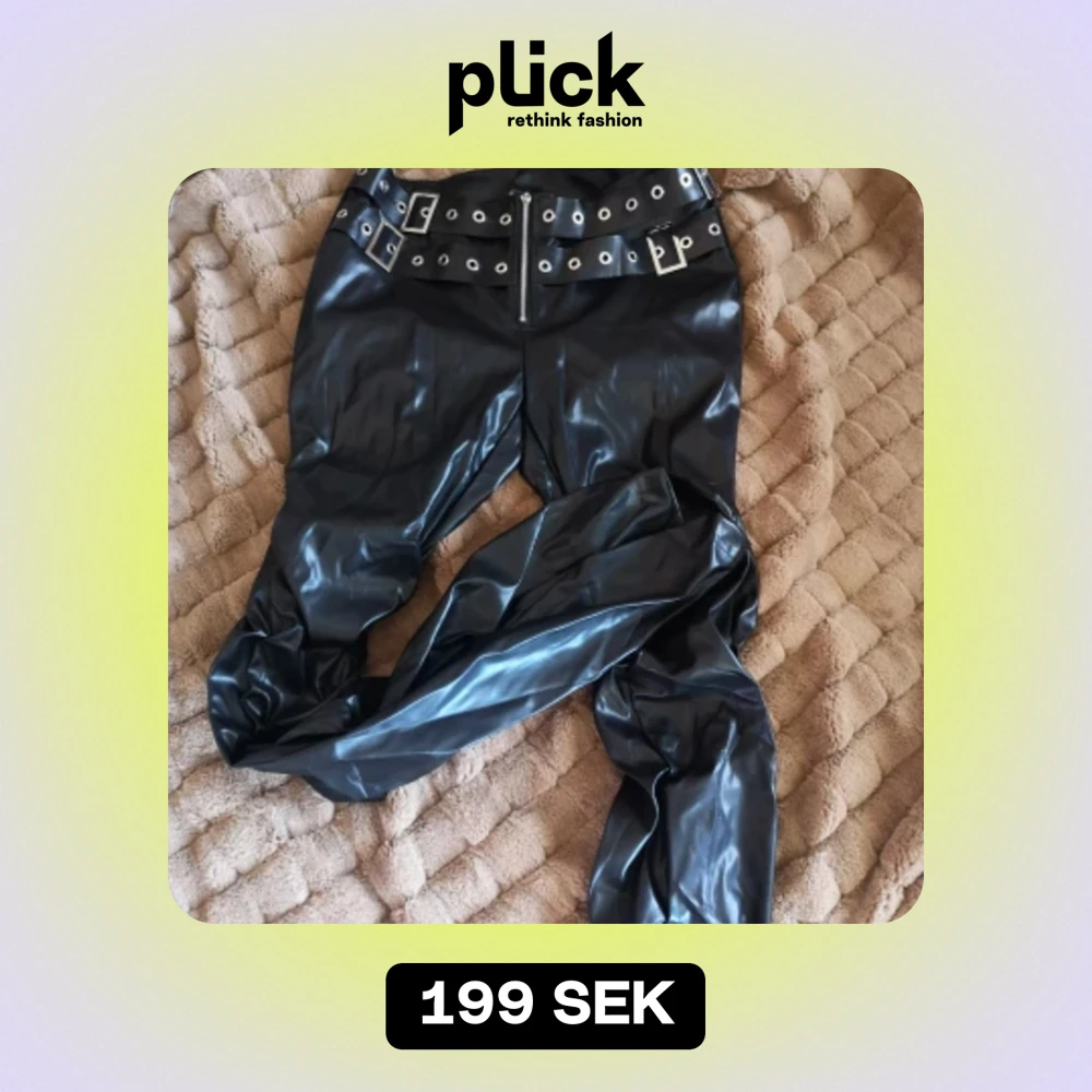 Byxor av imitations skinn. Passar om du är mellan S och M, eller bara M. Aldrig använd, superfint skick.