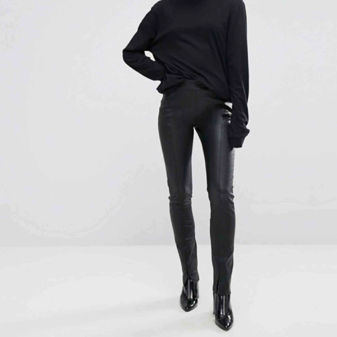 Limited edition skinnbyxor (100% läder) från Weekday. Sitter som en smäck och är något stretchiga så väldigt bekväma! Dragkedjor fram (på smalbenen) - se bilder. Så fina men används för sällan, nypris 2500kr och använda 2-3ggr!✨ frakt 63kr