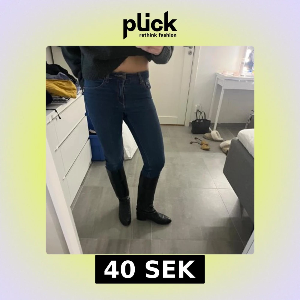 Snygg skinny jeans, mid waist. Super snygga till ett par stövlar💕 Midjemått rakt över 37cm och innerbenslängd 76cm