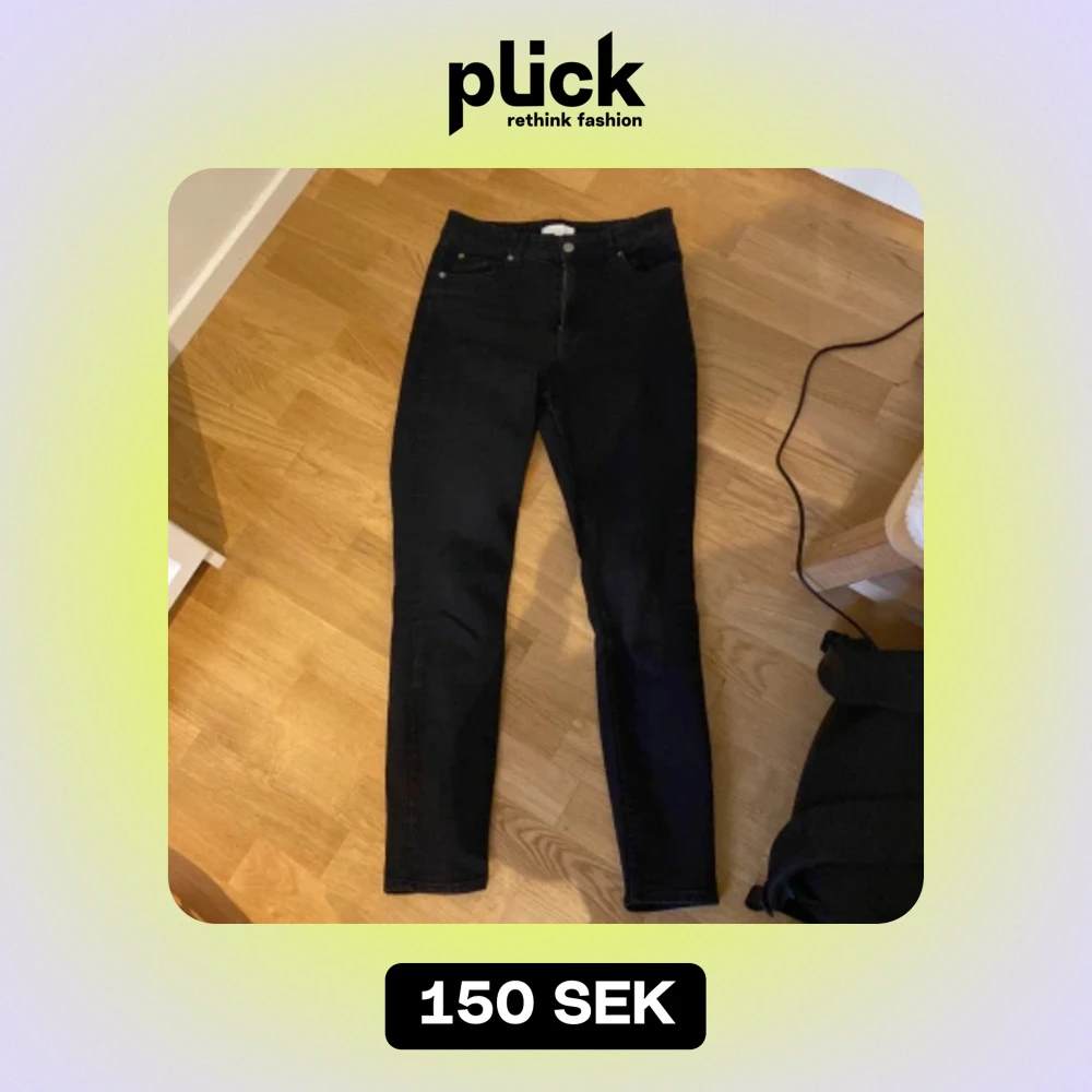 Vanliga svarta Skinny jeans utan hål eller något sådant. Dom är högmidjade och sitter skönt på