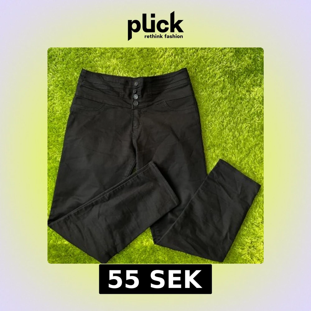 Svarta byxor med fyra knappar och dragkedja framtill, hög midja och raka ben. Snygga detaljer vid midjan och två fuskfickor bak. Tillverkade i ett stretchigt bomullsmaterial som sitter skönt hela dagen.