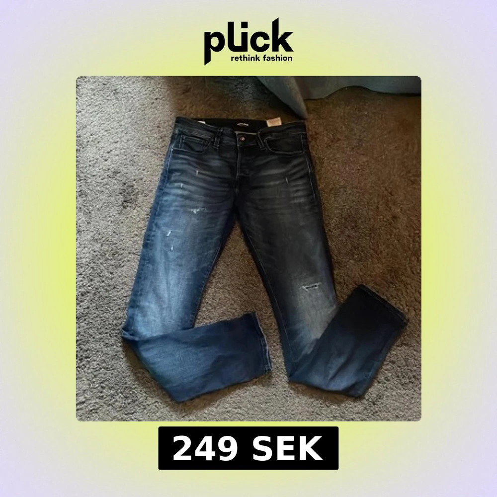 Säljer ett par mörkblå jack and jones byxor med sköna slitningar i storlek 32/32 // skriv vid mer funderingar 🙌🍺