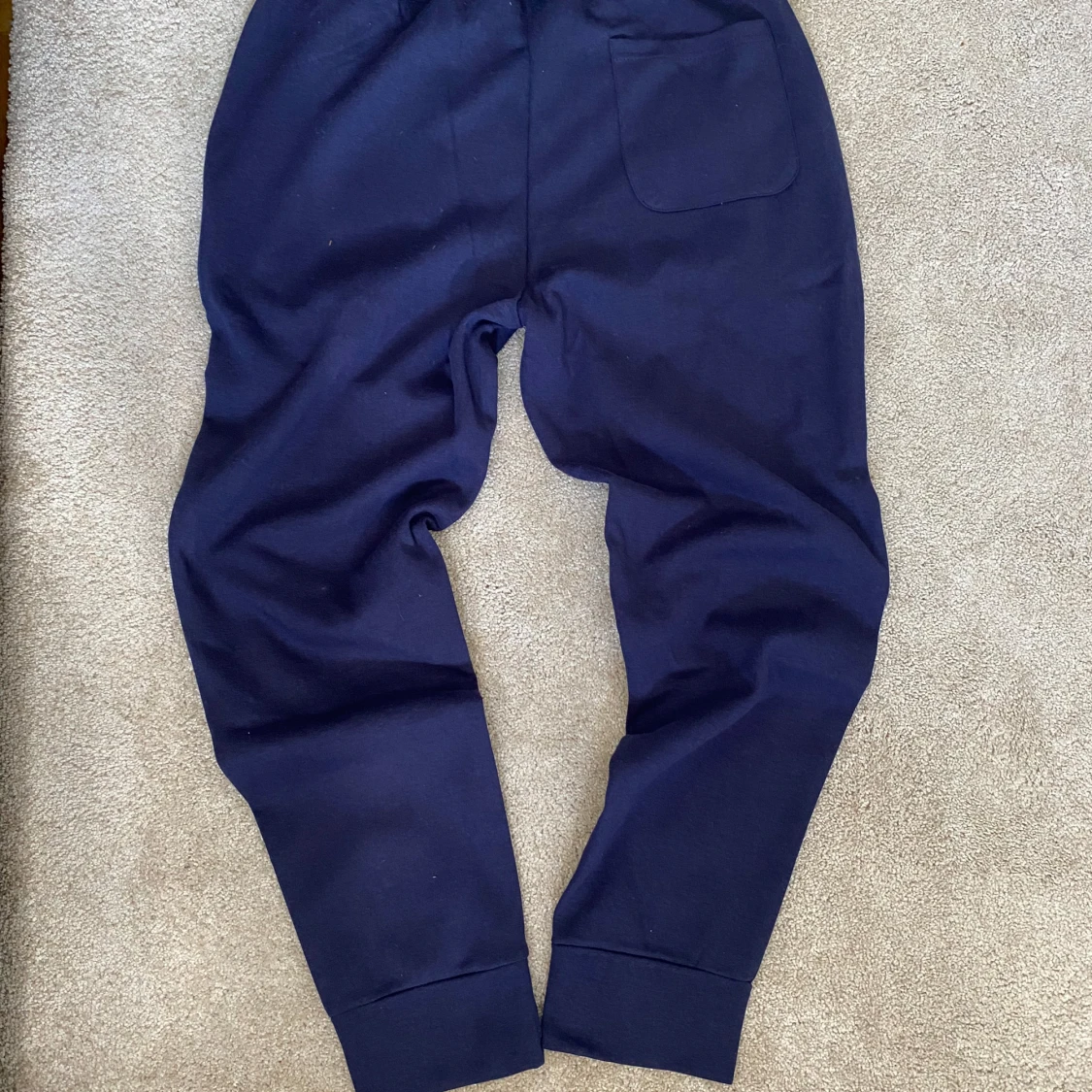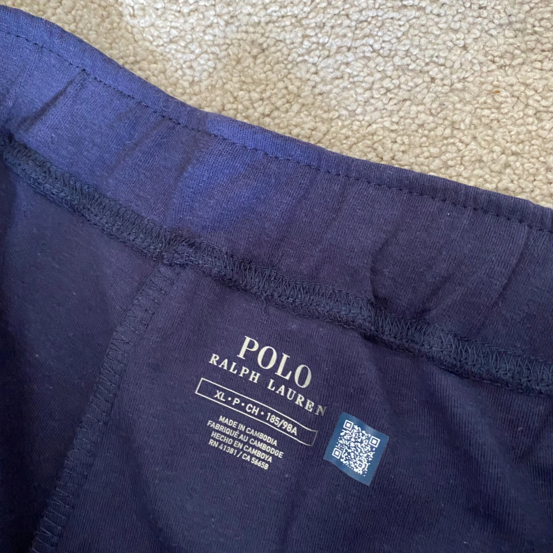 Mörkblå mjukisbyxor från Polo Ralph Lauren med klassisk logga broderad på vänster höft. Byxorna har snörning i midjan, muddar vid bensluten och en bakficka. Tillverkade i mjukt bomullsmaterial för maximal komfort. Sitter mer som ett L