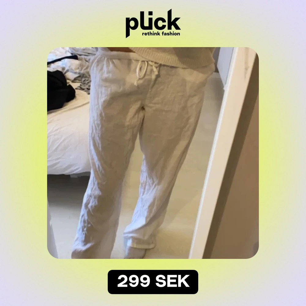 Säljer ett par superbekväma vita linnebyxor. De har en avslappnad passform med snörning i midjan för extra komfort. Perfekta för en chill dag hemma eller en avslappnad promenad. 🤍