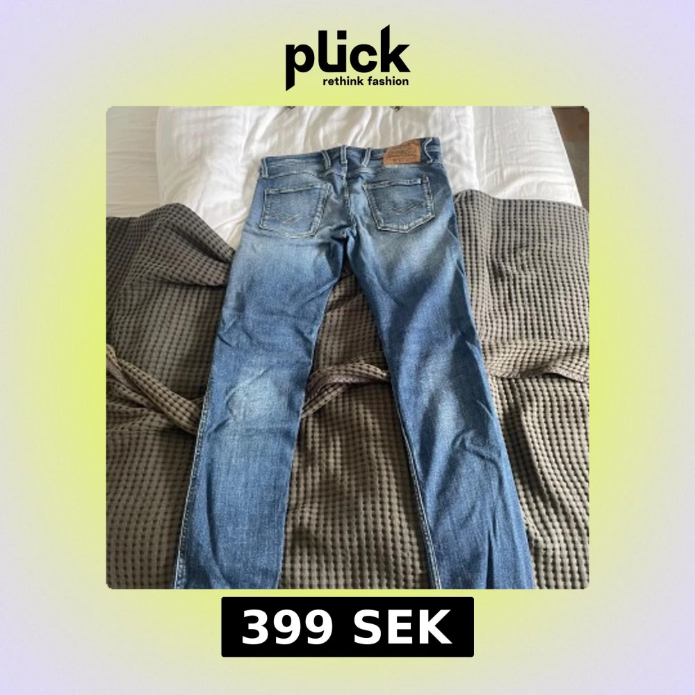 Säljer ett par snygga blå jeans från Replay, modell Anbass. De har en slim fit passform och är i storlek W30, L32.