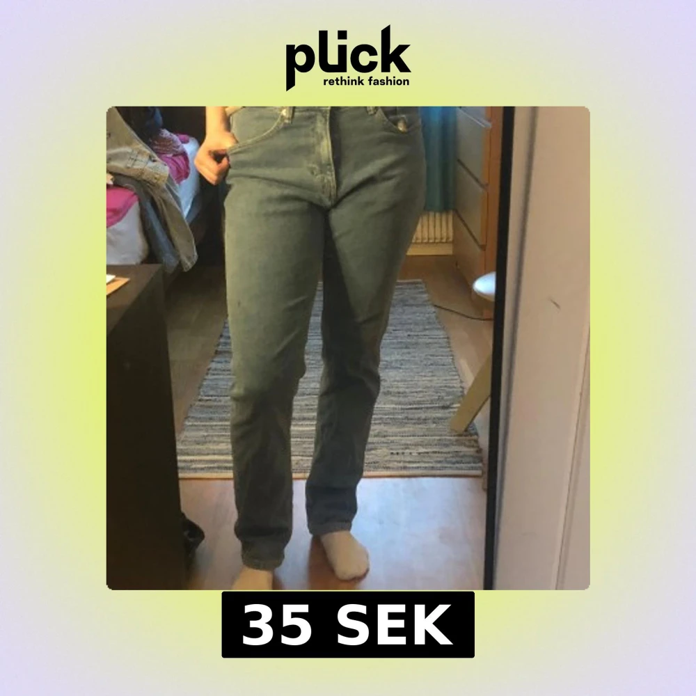 Säljer ett par klassiska blå slim fit jeans från H&M. Modellen har normal midja och raka ben med en smal passform. Jeansen är i mjukt denimtyg och passar perfekt till en avslappnad stil. Färg: mellanblå. Storlek 30/32.