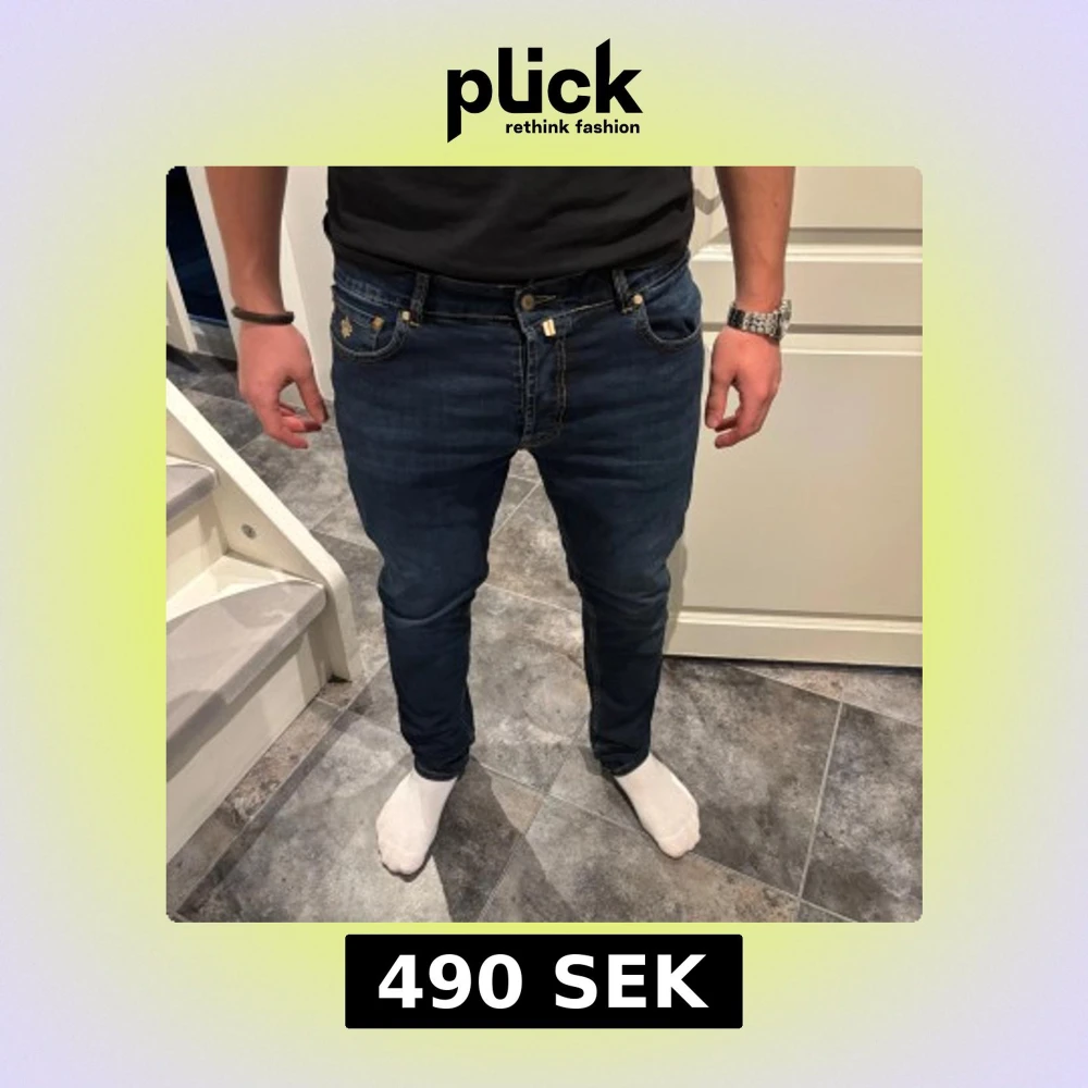 Snygga mörkblå jeansbyxor från Morris. Modellen är Steve Satin Jeans. Storlek W34 L32. Mycket bra skick endast använda 2-3 gånger