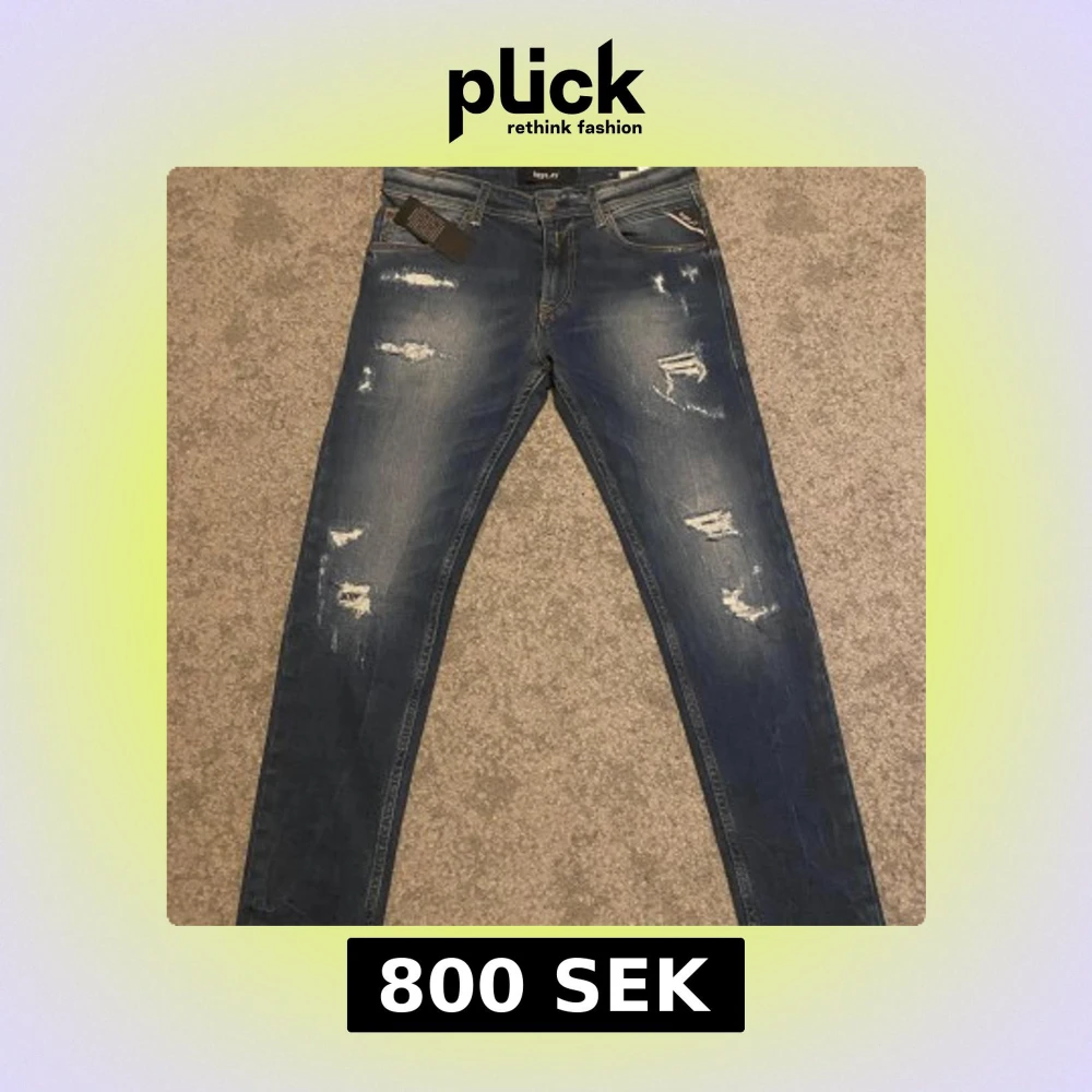 Snygga blå jeans från Replay med feta slitna detaljer. De är i storlek 30/30. Allt är helt nytt med tags. Bara testade men passade inte mig. pris kan diskuteras vid snabb äffar!