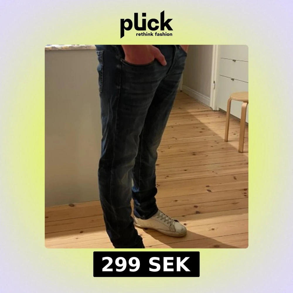 Mörkblå jeans från Jack&jones, slim fit. Jeansen har normal midja och raka ben, perfekta för en clean och stilren vardagsstil. Nypris 899! Bra skick och lättmatchat!🌟