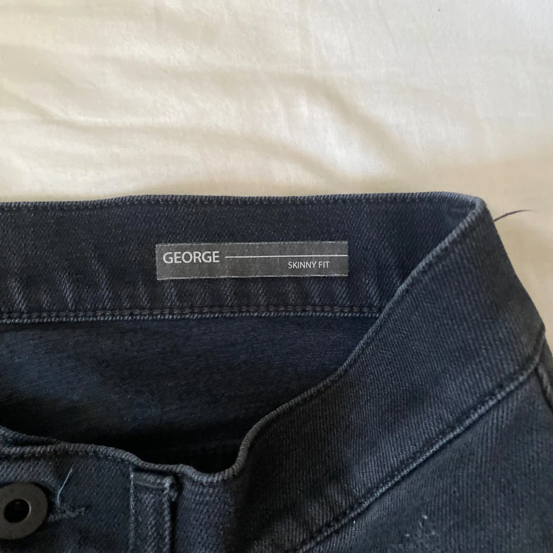 Svarta skinny fit jeans från George i storlek 31. Klassisk femficksmodell med smal passform och normal midja. Jeansen är gjorda i ett stretchigt bomullsmaterial som sitter tajt och snyggt längs benen. Perfekt för dig som gillar en stilren och enkel look.