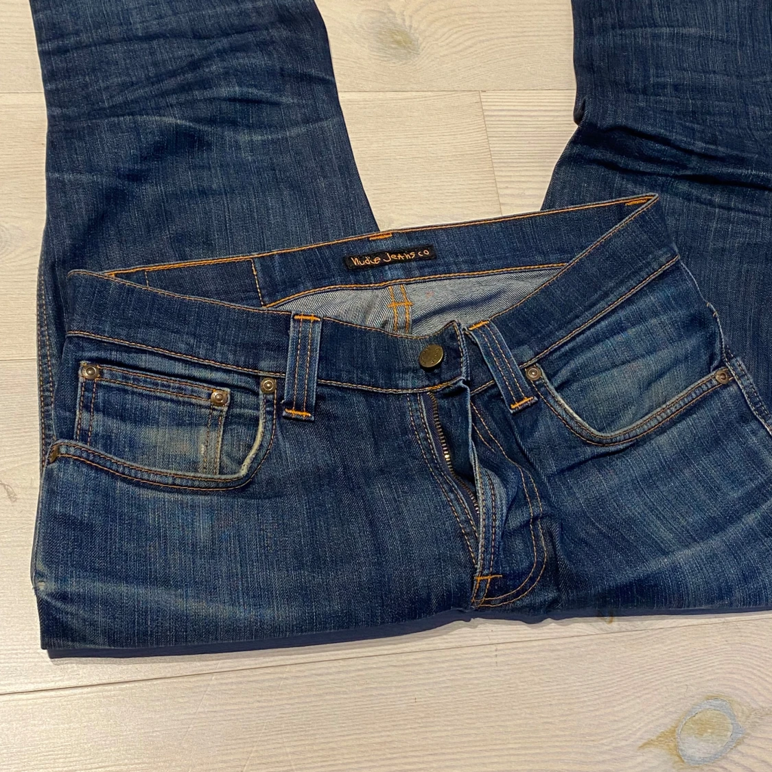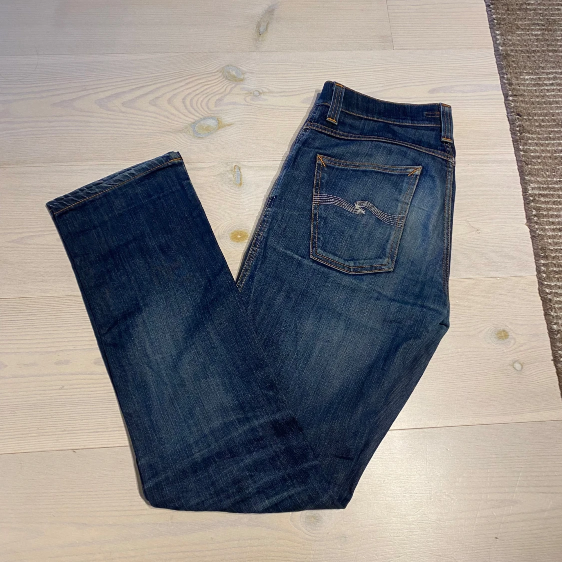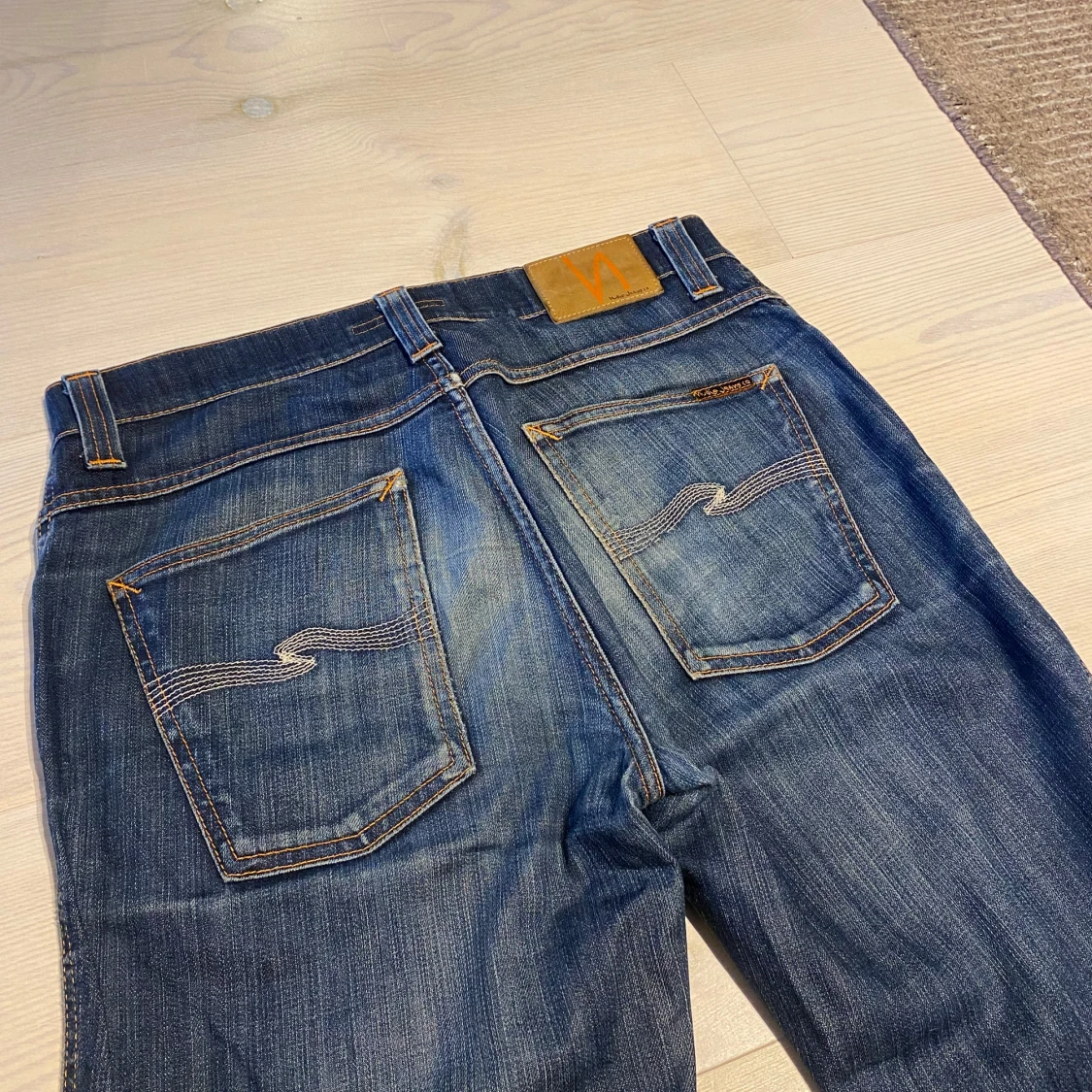 Säljer dessa sjukt feta nudie jeans! Modell slim jim, som är slimfit, storlek 33/34 men skulle säga att det passar mer 31-32/33. Dessa är fett unika och har en go fade som kommer få dig att sticka ut! Skicket är suveränt, bara ett litet lagat hål inuti fickan men det märks inte av. Inga andra defekter!😊 Skriv för frågor eller prisförslag!