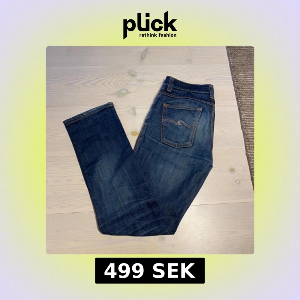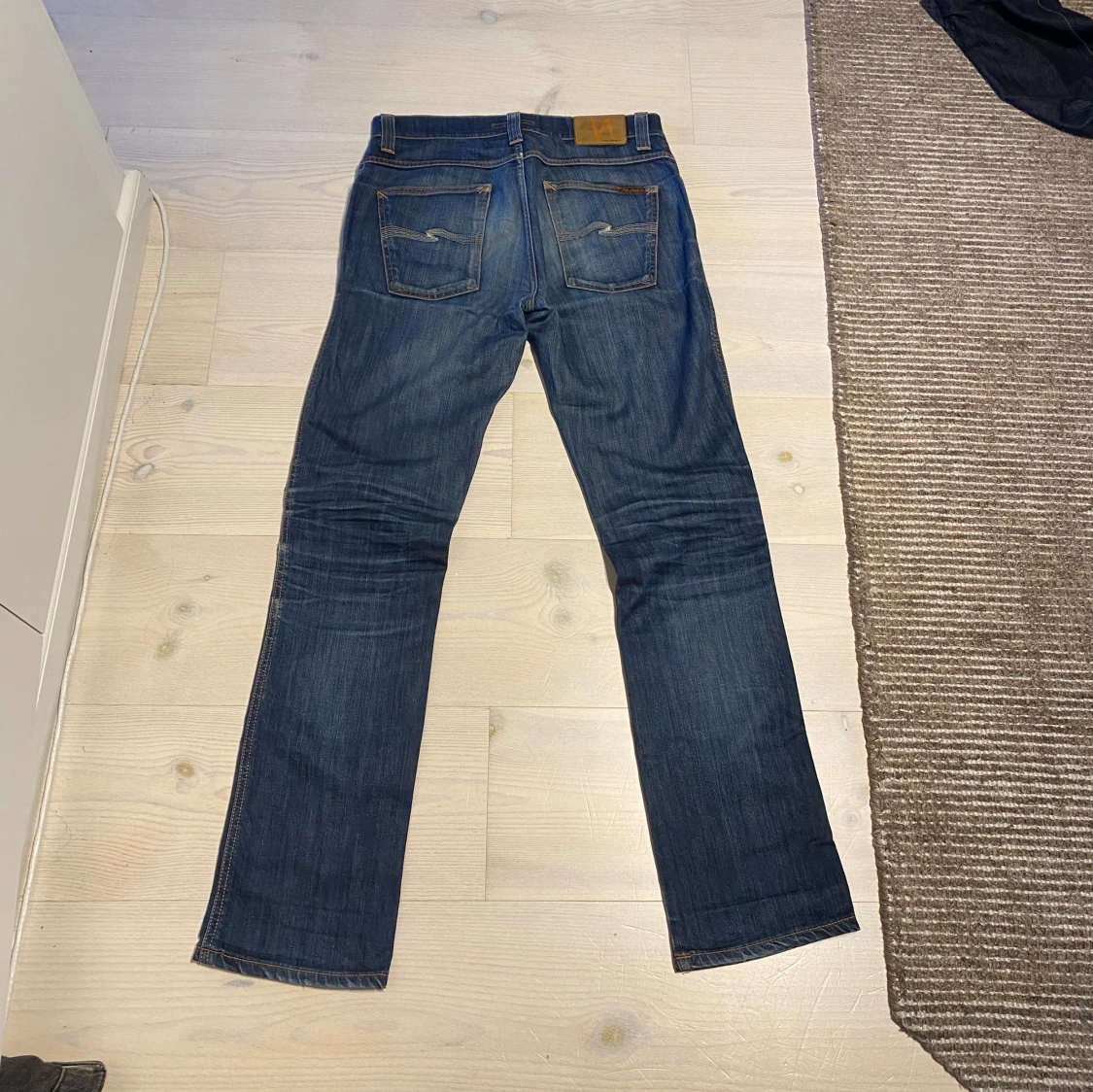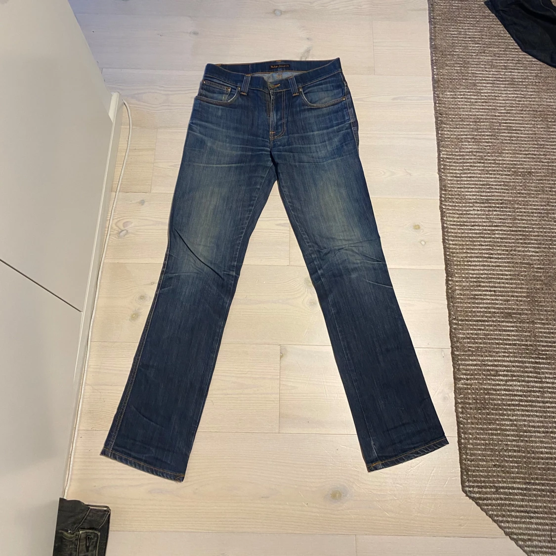 Säljer dessa sjukt feta nudie jeans! Modell slim jim, som är slimfit, storlek 33/34 men skulle säga att det passar mer 31-32/33. Dessa är fett unika och har en go fade som kommer få dig att sticka ut! Skicket är suveränt, bara ett litet lagat hål inuti fickan men det märks inte av. Inga andra defekter!😊 Skriv för frågor eller prisförslag!