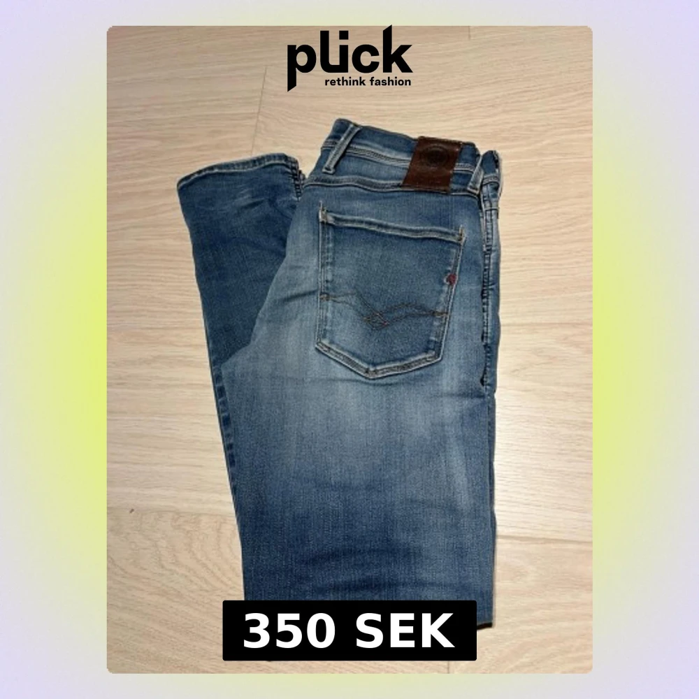 Säljer ett par snygga blå jeans från Replay i modellen anbass hyperflex slim dom är väl använda men finns mycket liv kvar i dom pris kan diskuteras vid snabb affär hör av vid minsta lilla fråga!