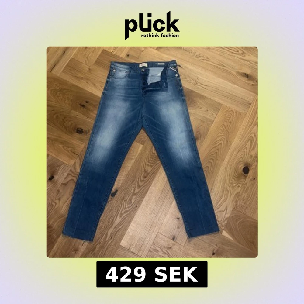 Blå Replay jeans med sjukt snygg tvätt och färg, de är väldigt unika och passform är slimfit, ”maddiespa”. De passar bäst på någon som är 158-170. Har ej exakta måtten men W27/28 ungefär. De är inte sydda vid foten och uppklippta. Skicket är perfekt och inga skador.