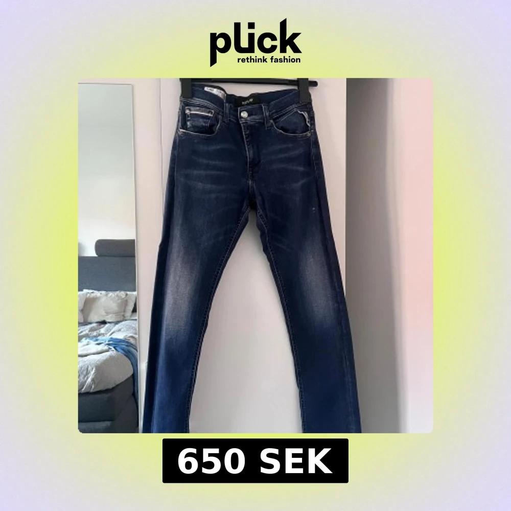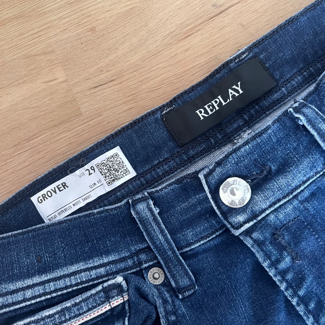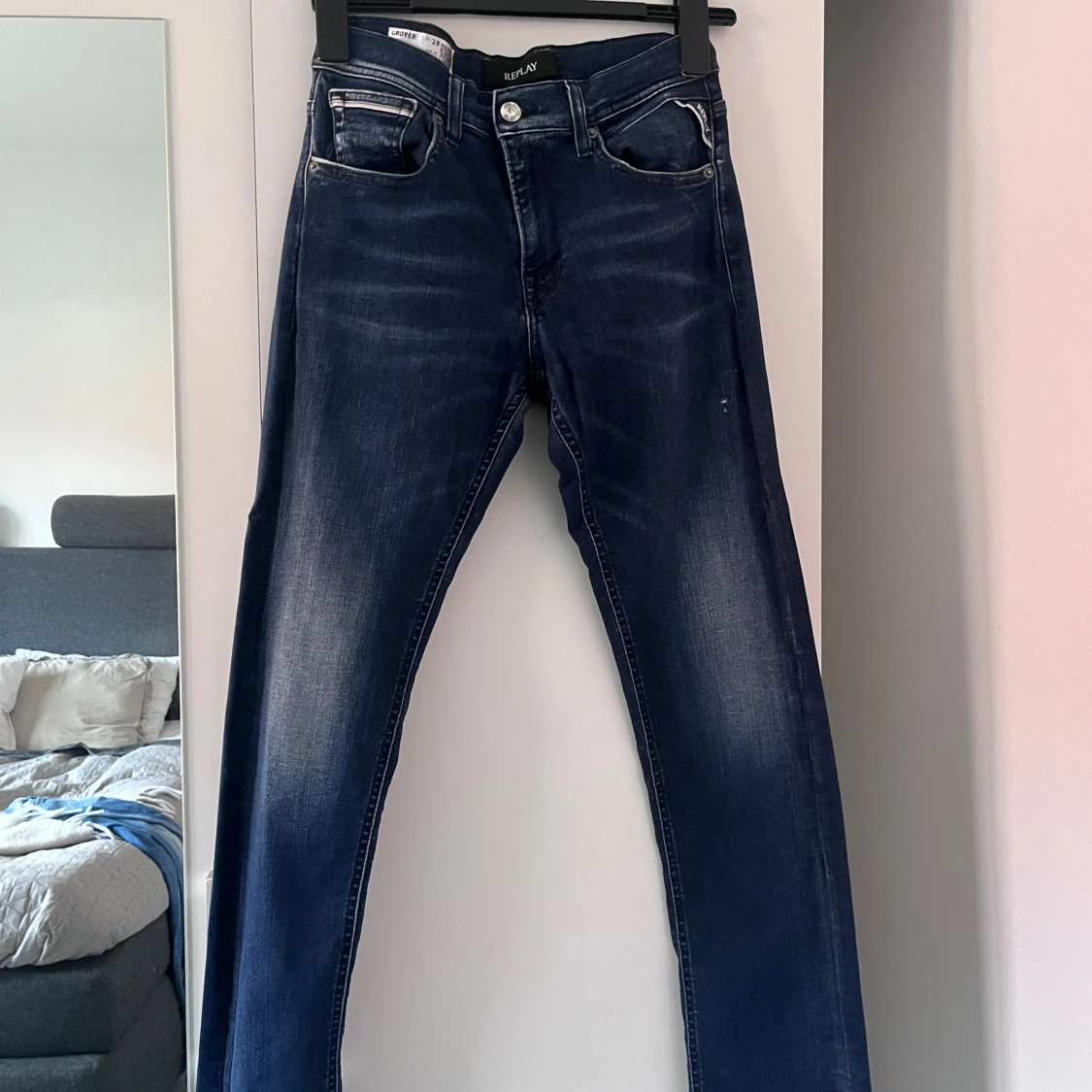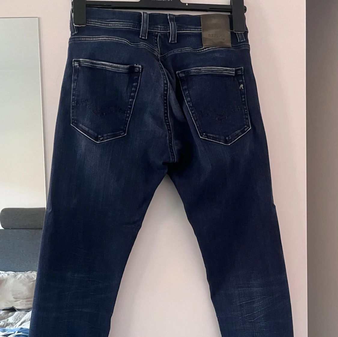 Säljer dessa Replay Grover jeans i mörkblå tvätt, slim fit modell i storlek 29. Gylfen har tappat lite färg som inte syns om man inte tittar på nära håll, annars mycket bra skick.