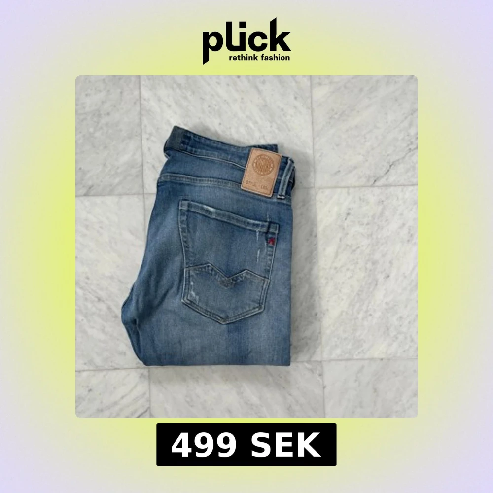 Snygga Replay Waitom jeans i klassisk blå tvätt med lätt slitna detaljer och raka ben. Jeansen har fem fickor, knappgylf och diskret Replay-logga vid fickan. Perfekta för dig som gillar en avslappnad men stilren look.