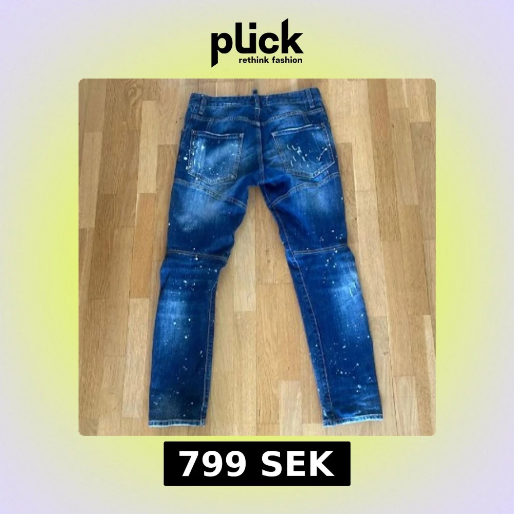 Snygga blå jeans från Dsquared2 med slitningar lätt att styla med valfri tröja (vitt, blått,svart osv), hål och vita färgstänk för en trendig look. Klassisk femficksmodell med slim fitt och lite pös hela vägen. Perfekta för dig som gillar streetstyle och vill sticka ut. Pris kan diskuteras vid snabb affär. Kan mötas upp i Stockholms området🤩💸