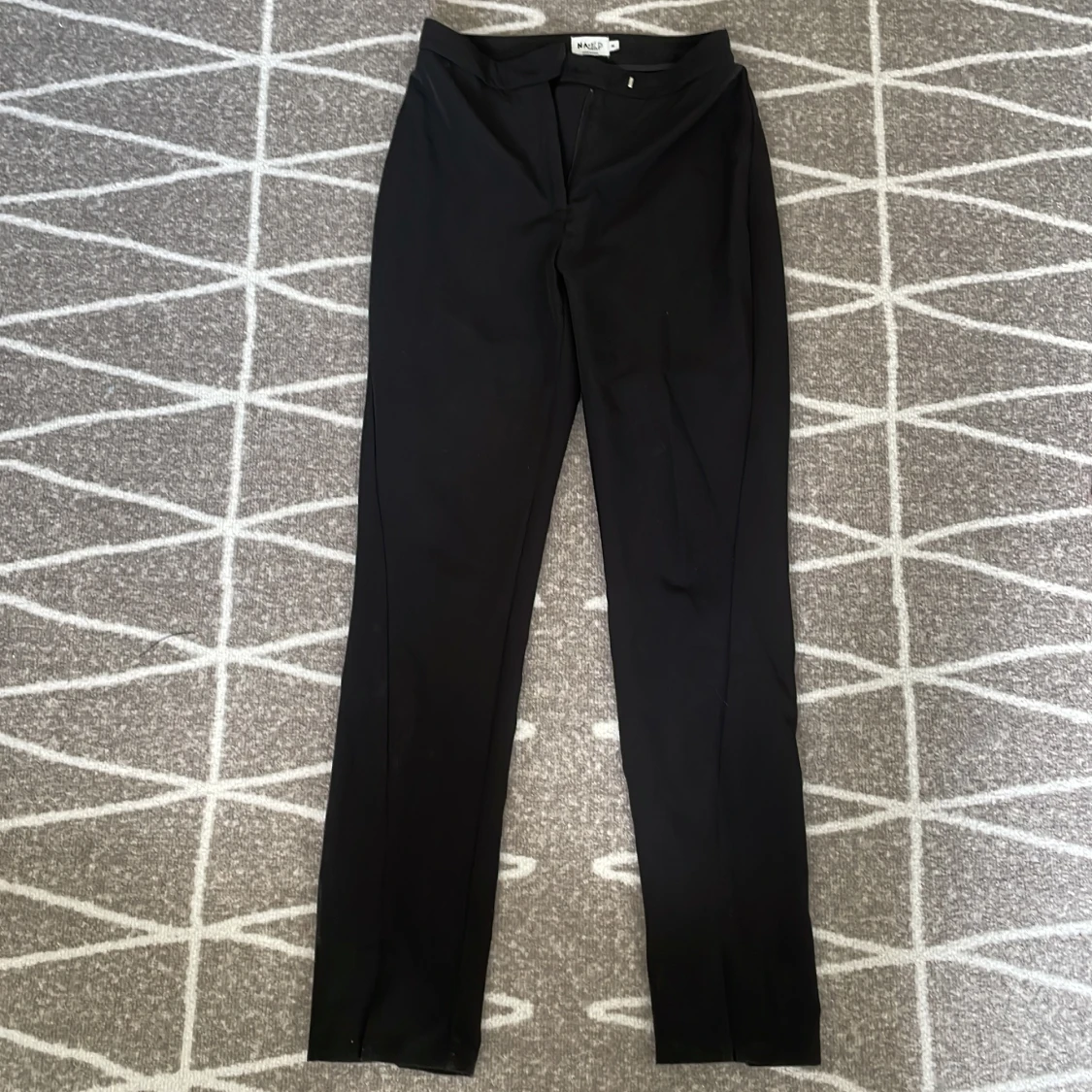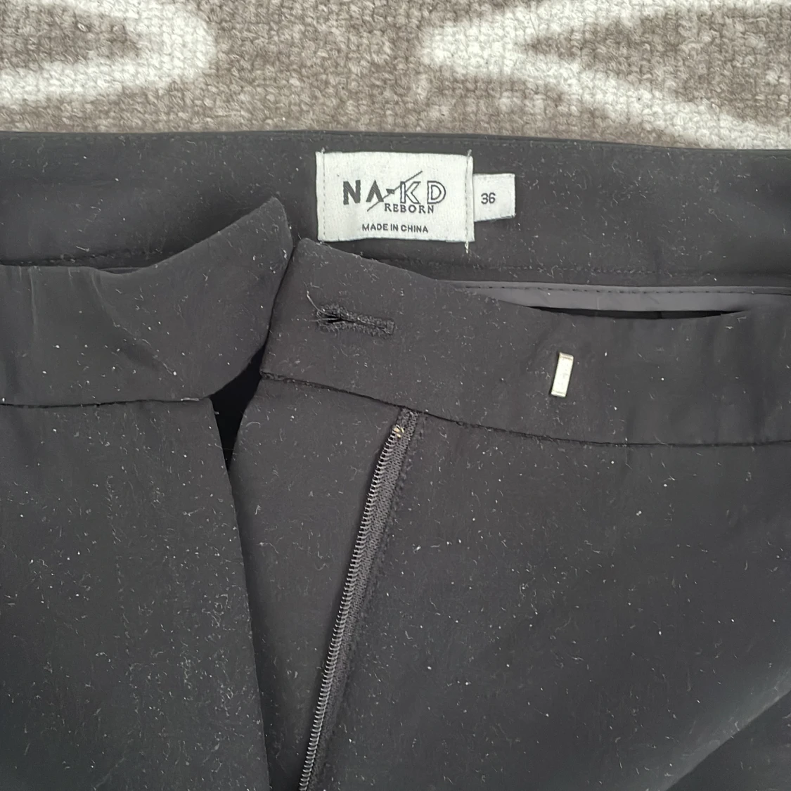 Säljer dessa fina kostymbyxor från NAKD x REBORN kollektionen. I använt skick därav noppriga. Slitsen vid fötterna gör att de lägger sig fint vid skorna.