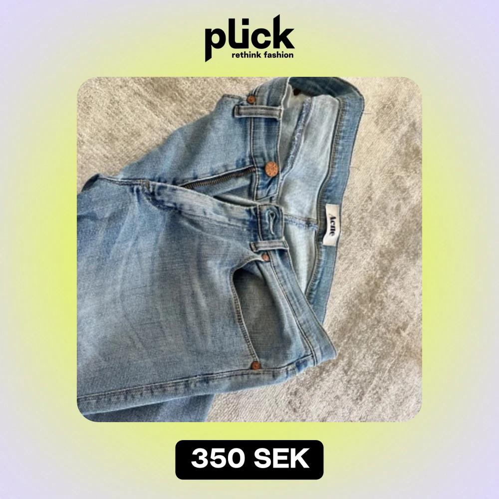 Slitet ljusblå Acnejeans, modell Max Angel, knappt använda! Storlek 31/32. Midja =31, längd 32. Normal till smal passform med stretch.