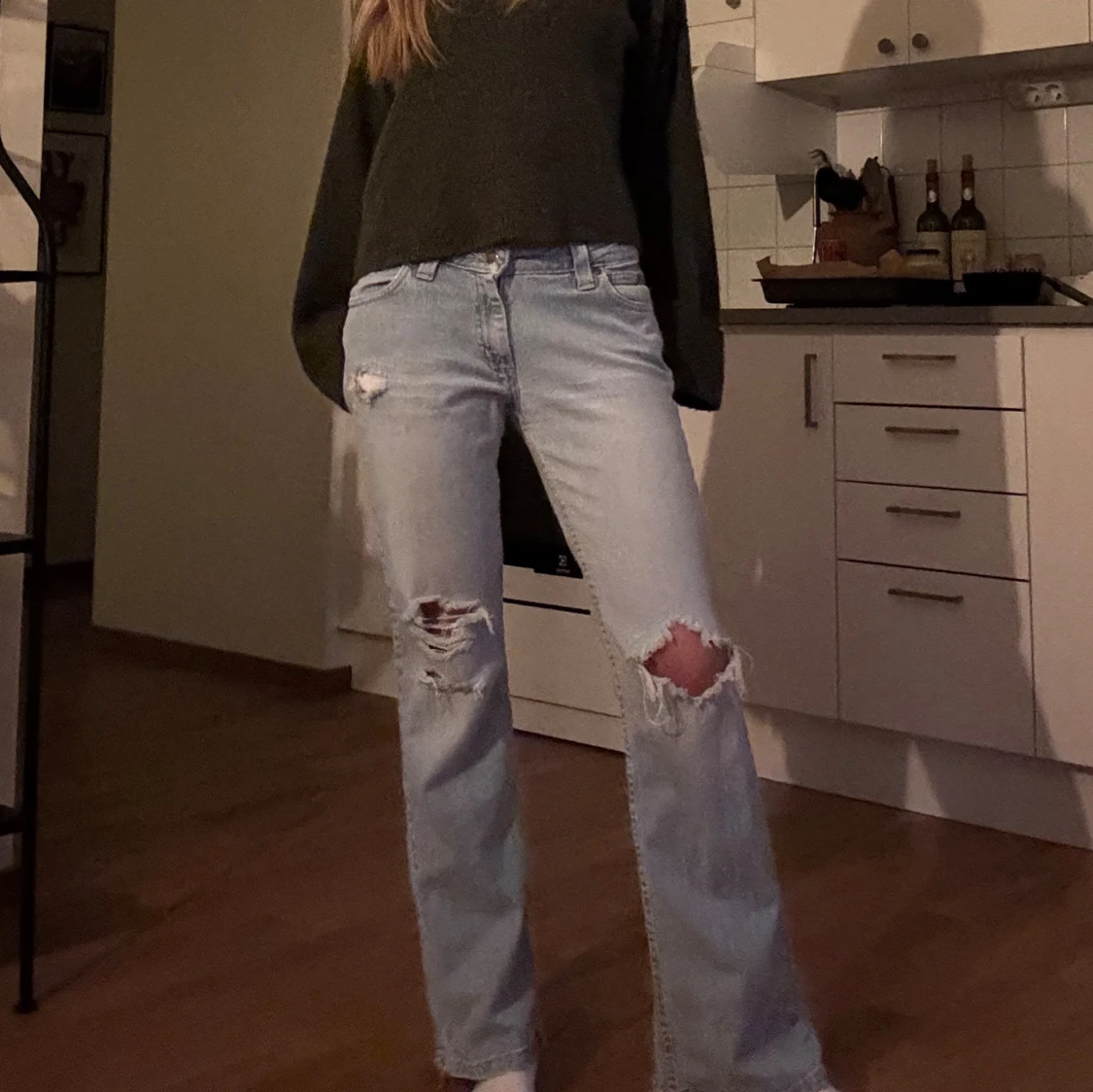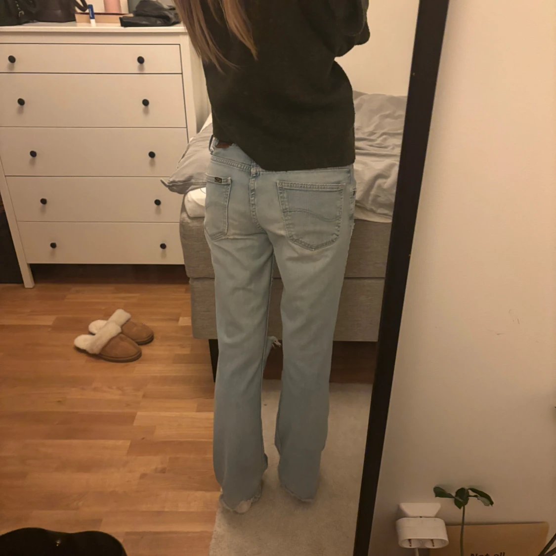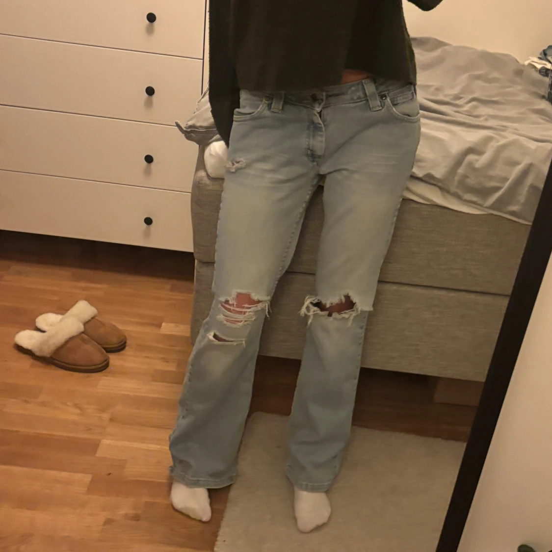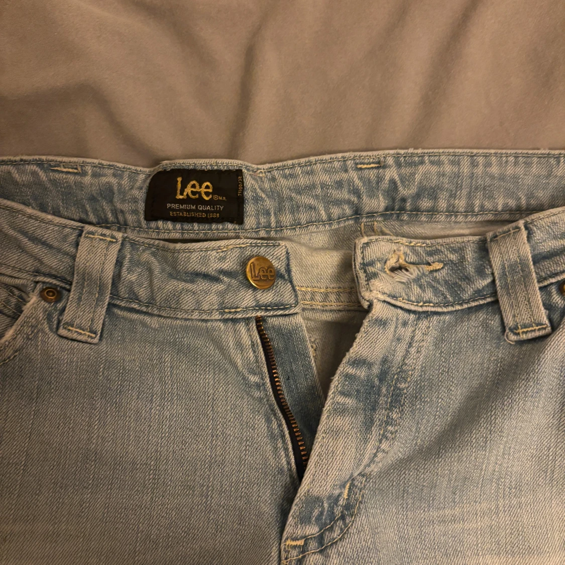 Ljusblå jeans från Lee med raka ben och snygga slitningar på båda knäna. Jeansen har klassisk femficksdesign, normal passform och dragkedja i gylfen. Perfekta för en avslappnad och trendig look.