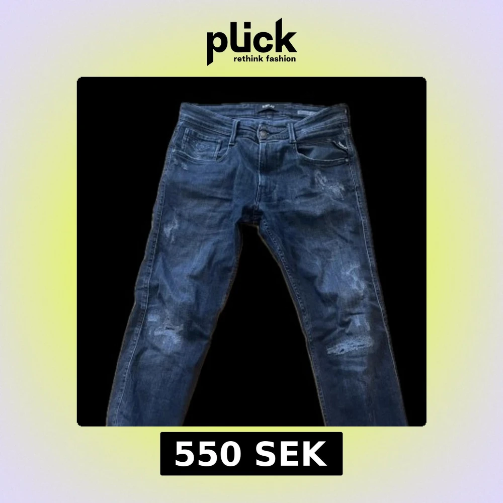 Svarta jeansbyxor från Replay med slitna detaljer och klassisk femficksdesign. Perfekta för en avslappnad stil. Upplagda någon cm för en lite bättre passform