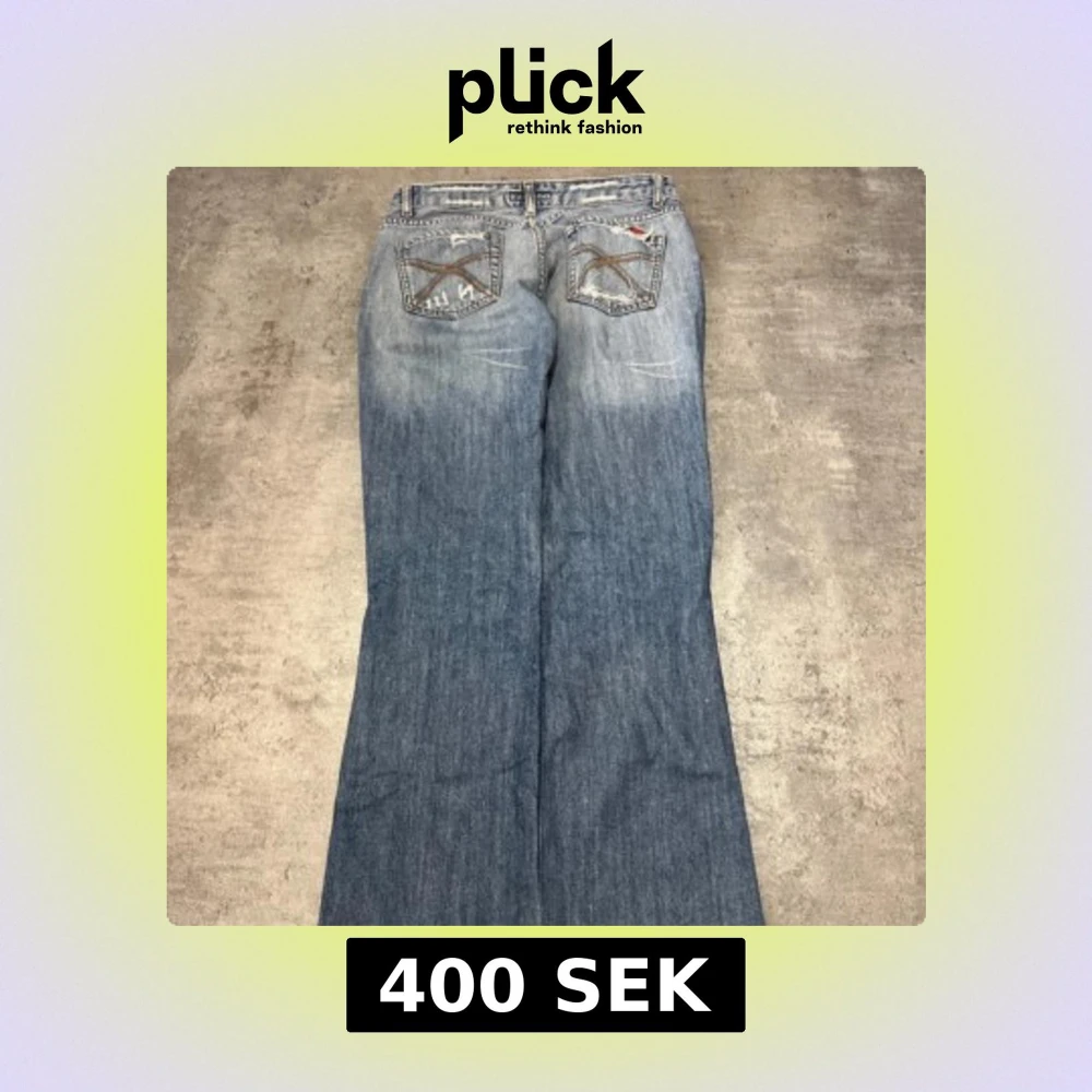 Snygga ljusblå jeans med breda ben och slitna detaljer framtill. Längd: 101cm - Midja: 39cm innerbenslängd: ca 78cm Pris kan diskuteras🥰