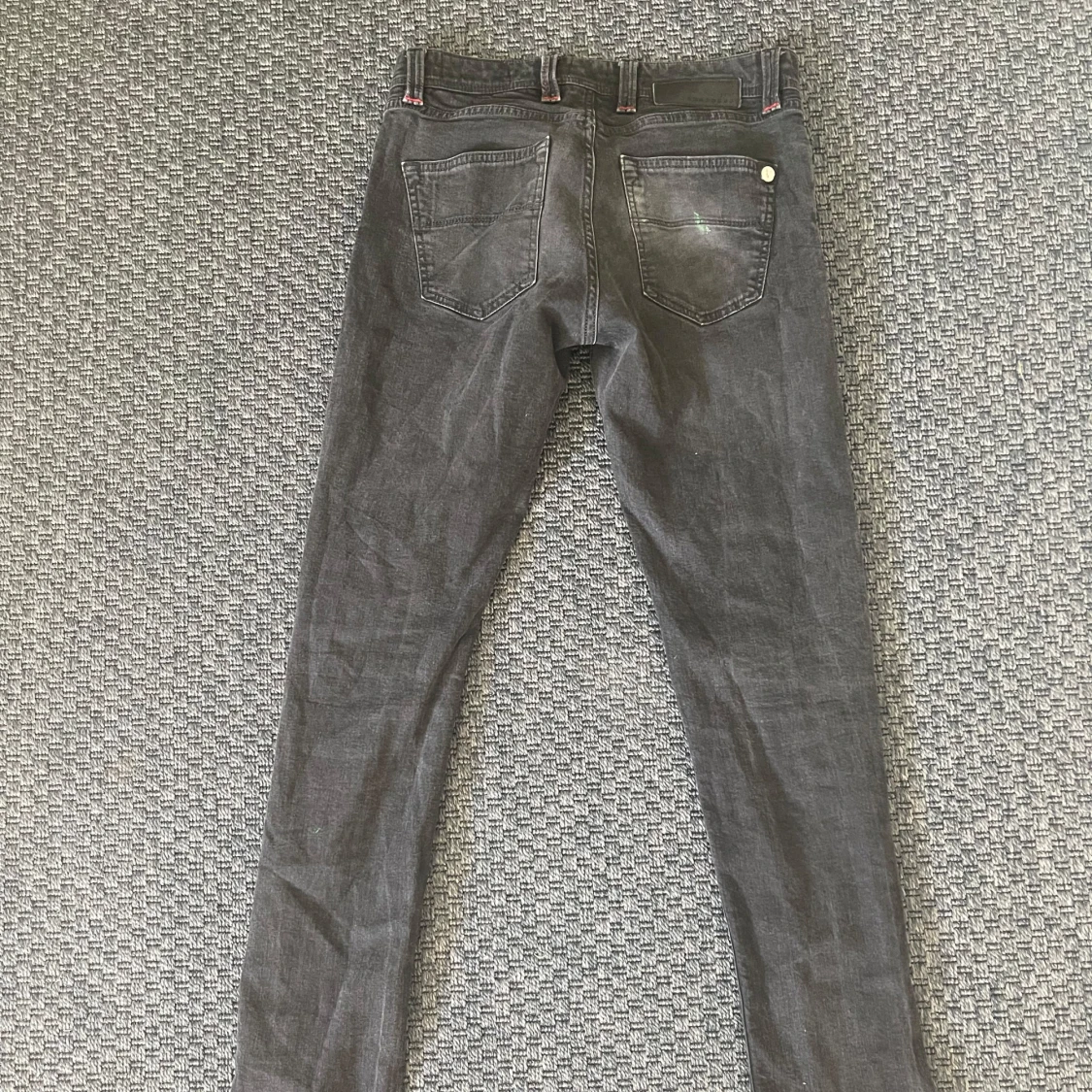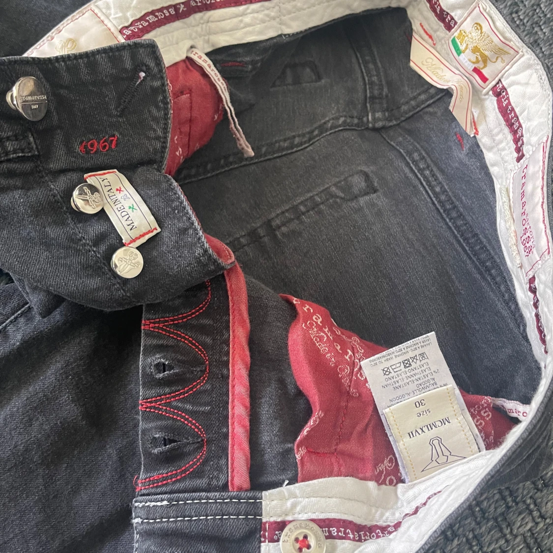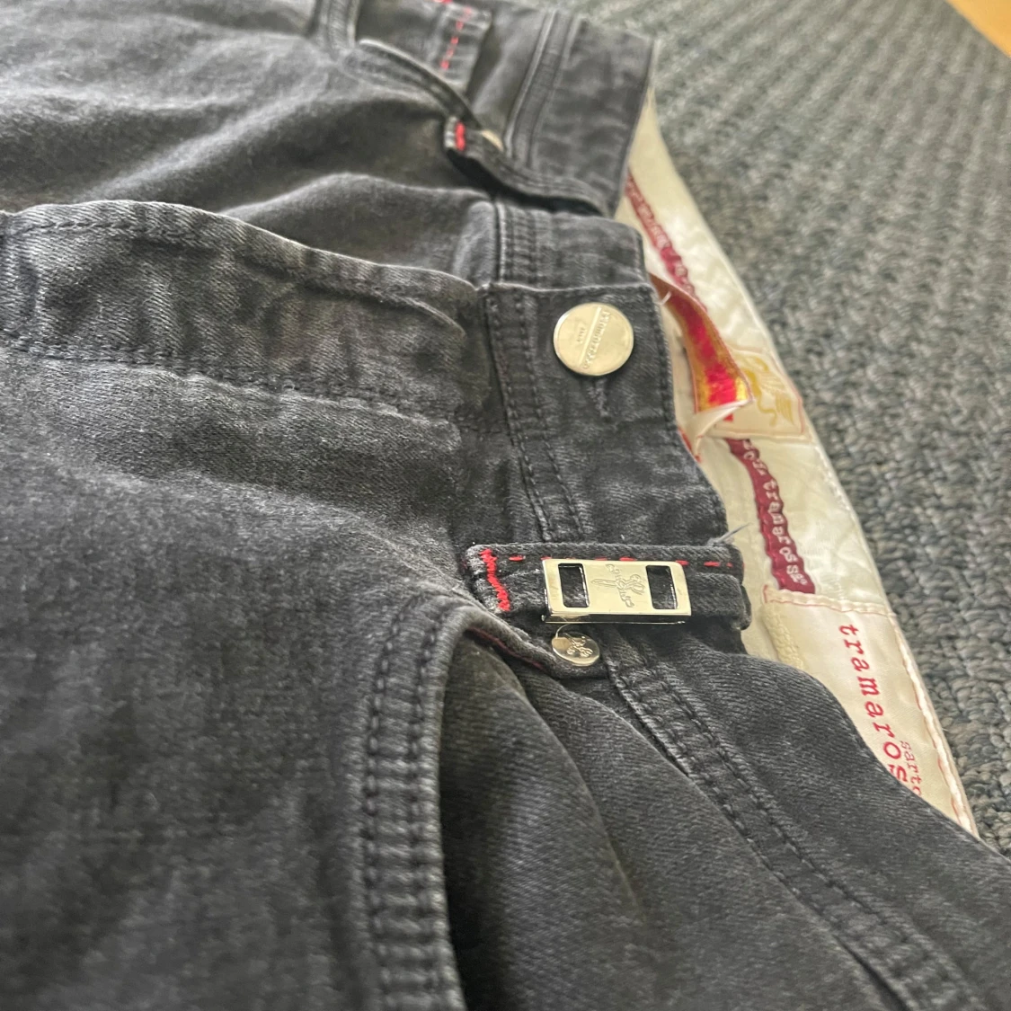 Säljer ett par svarta tramarossa jeans med snygga röda sömmar och detaljer. Jeansen har raka ben, klassiska bakfickor och silverfärgade knappar. Märkeslapp bak i midjan och coolt innerfoder med mönster. Nypris är 5500 kr och skicket är bra finns en liten fläck på fickan, se första bilden! Skriv vid funderingar!