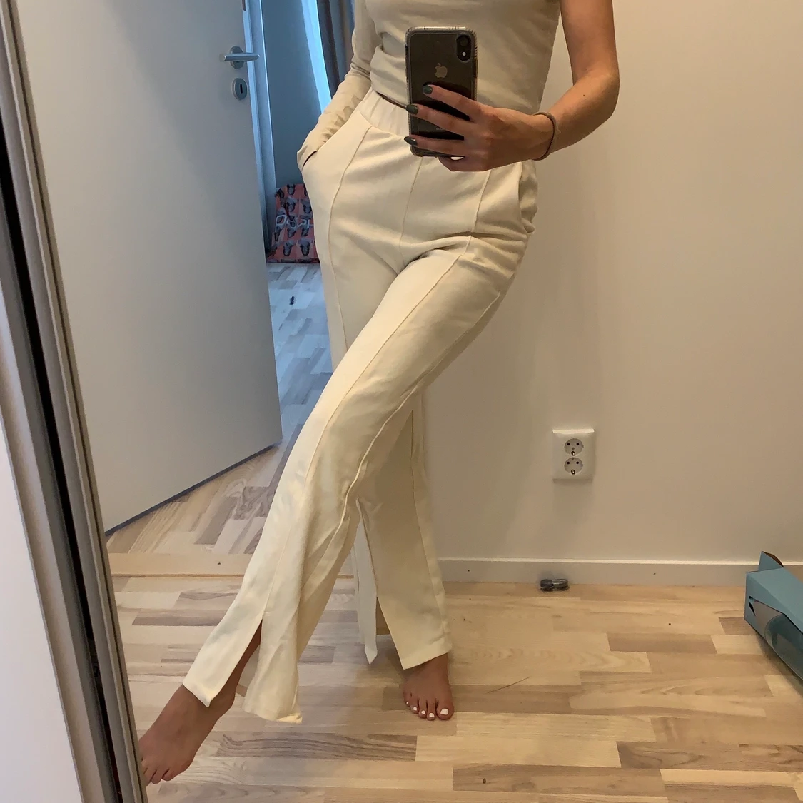 Mjuka kostymbyxor med slits där fram från Gina som är slutsålda nu! Säljer pga har ett par likadana💕köparen står för frakten