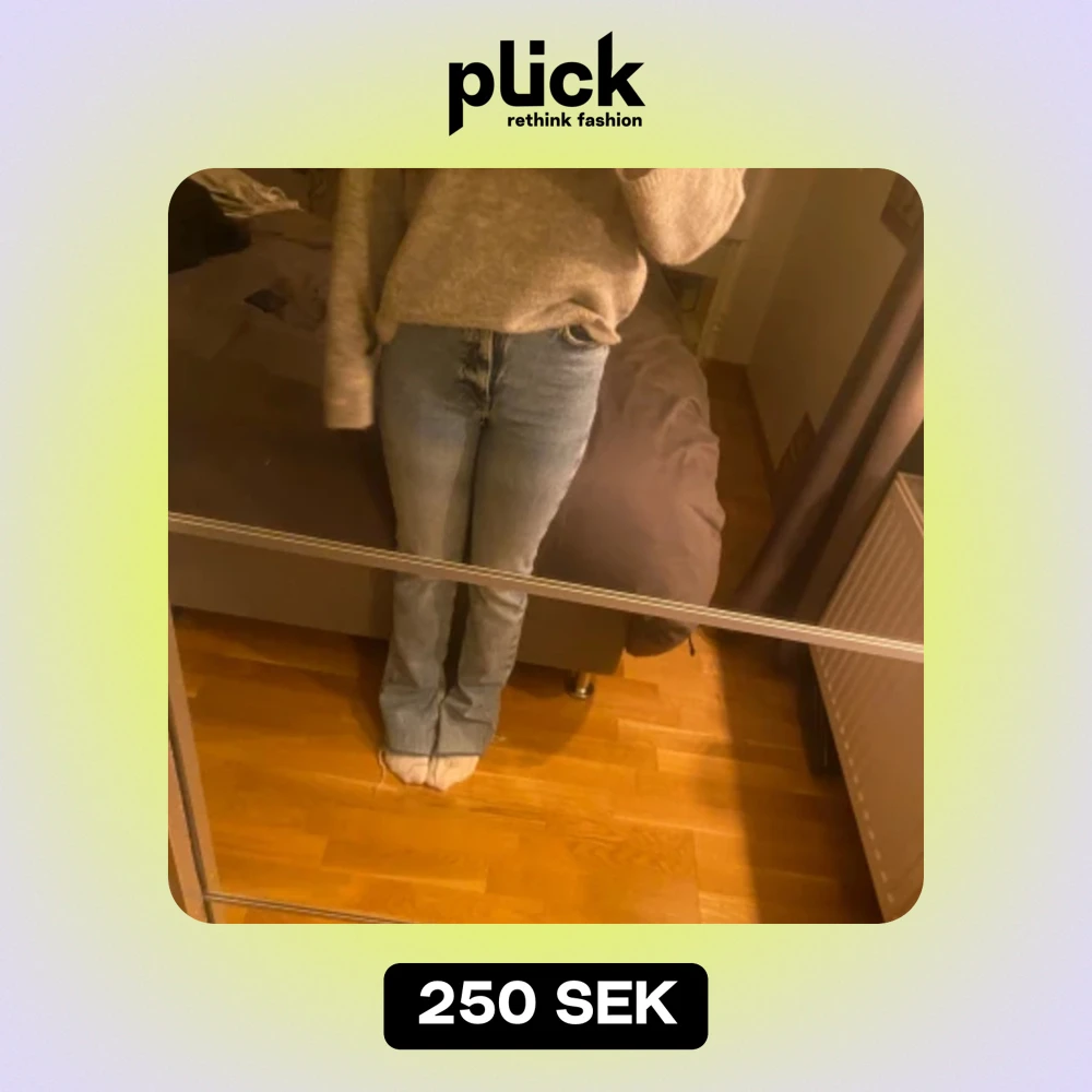 Jättefina högmidjade blåa jeans med slits i storlek 32 från zara. Används inte längre då dom är för små, använda en gång💕Nypris 399kr men säljer för 250kr✨