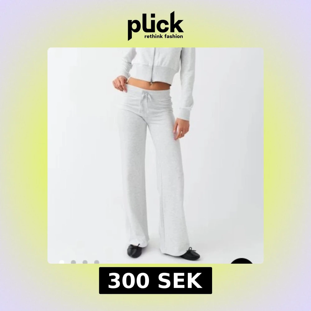 Superbekväma ljusgrå mjukisbyxor med utsvängda ben och snörning i midjan. Byxorna har en loose passform och är tillverkade i mjukt bomullsmaterial. Perfekta för en chill och avslappnad stil. HELT SLUTSÅLDA. Obs dom har lite fläckar på baksidan längst ner på benen fråga om bild