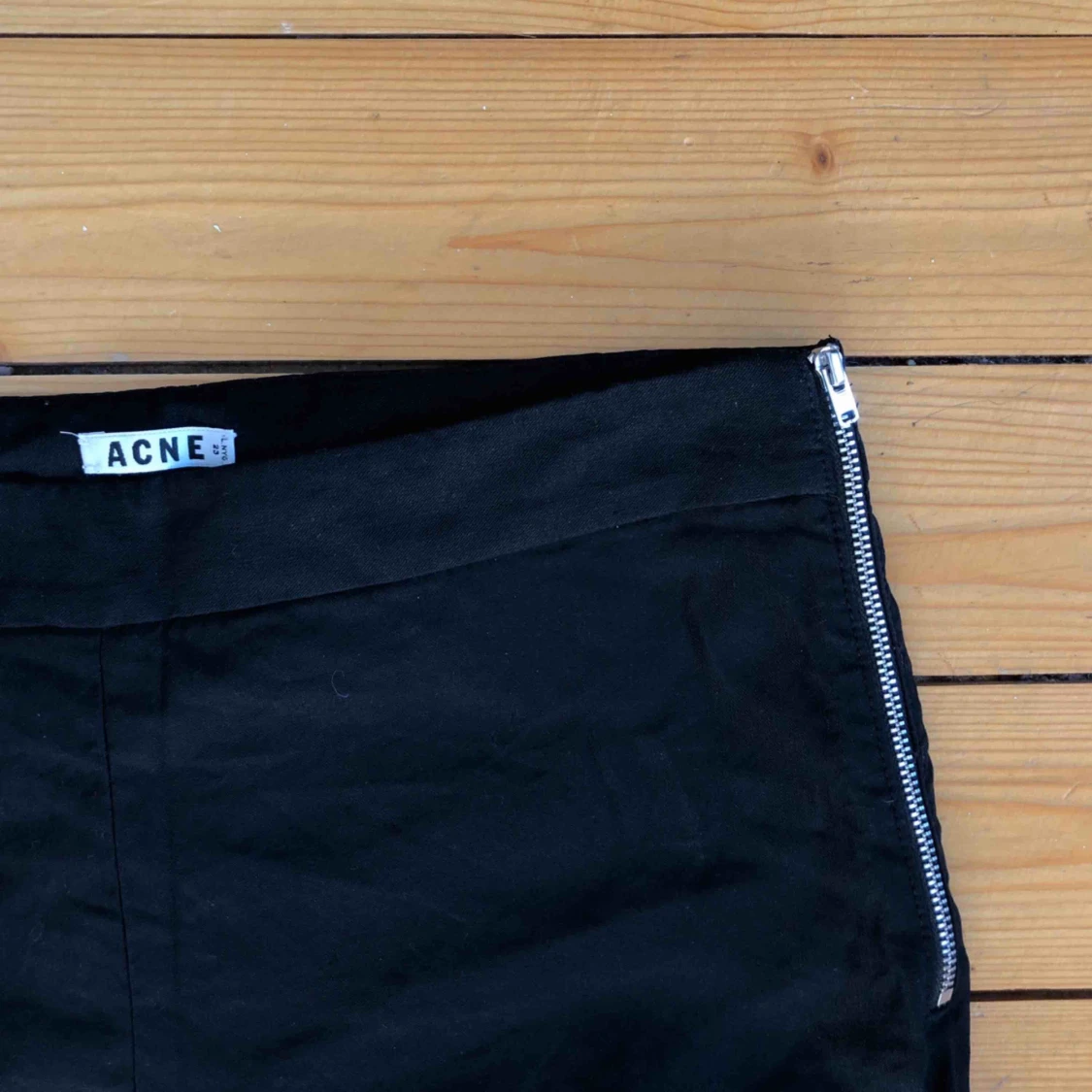 Svarta smala byxor i linne och viskos-blandning från acne, medium waist. Sparsamt använda. Normala i storleken. Köparen betalar frakt, alt upphämtning i Gävle eller Uppsala!