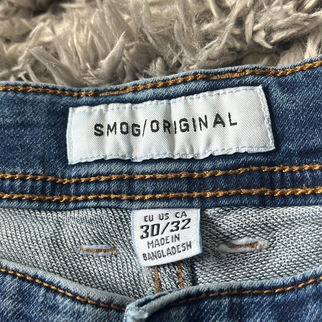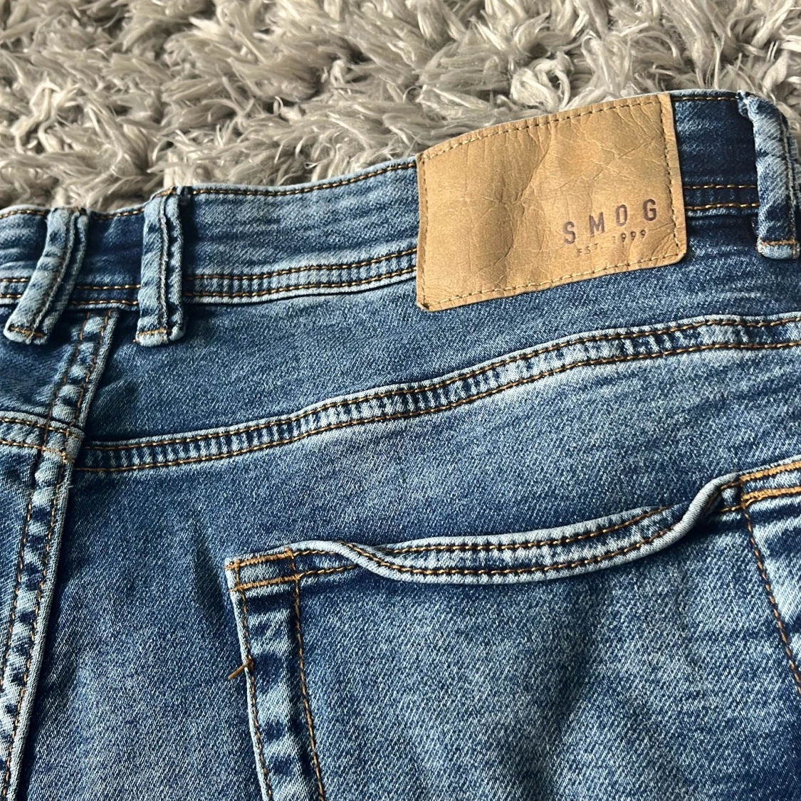 Snygga blå jeans från Smog/Original i klassisk tvätt med slitningar och kontrastsömmar. Modellen har fem fickor, normal passform och raka ben. Perfekta till sneakers och hoodie för en chill look.